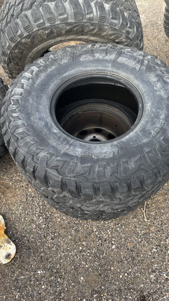 ZelleSelling these 35 inch tires Tire size is 35 x 12 1/2 x 15 These tires are in good condition set a five. The black rim is not included $600 or best offer. Welling to negotiate