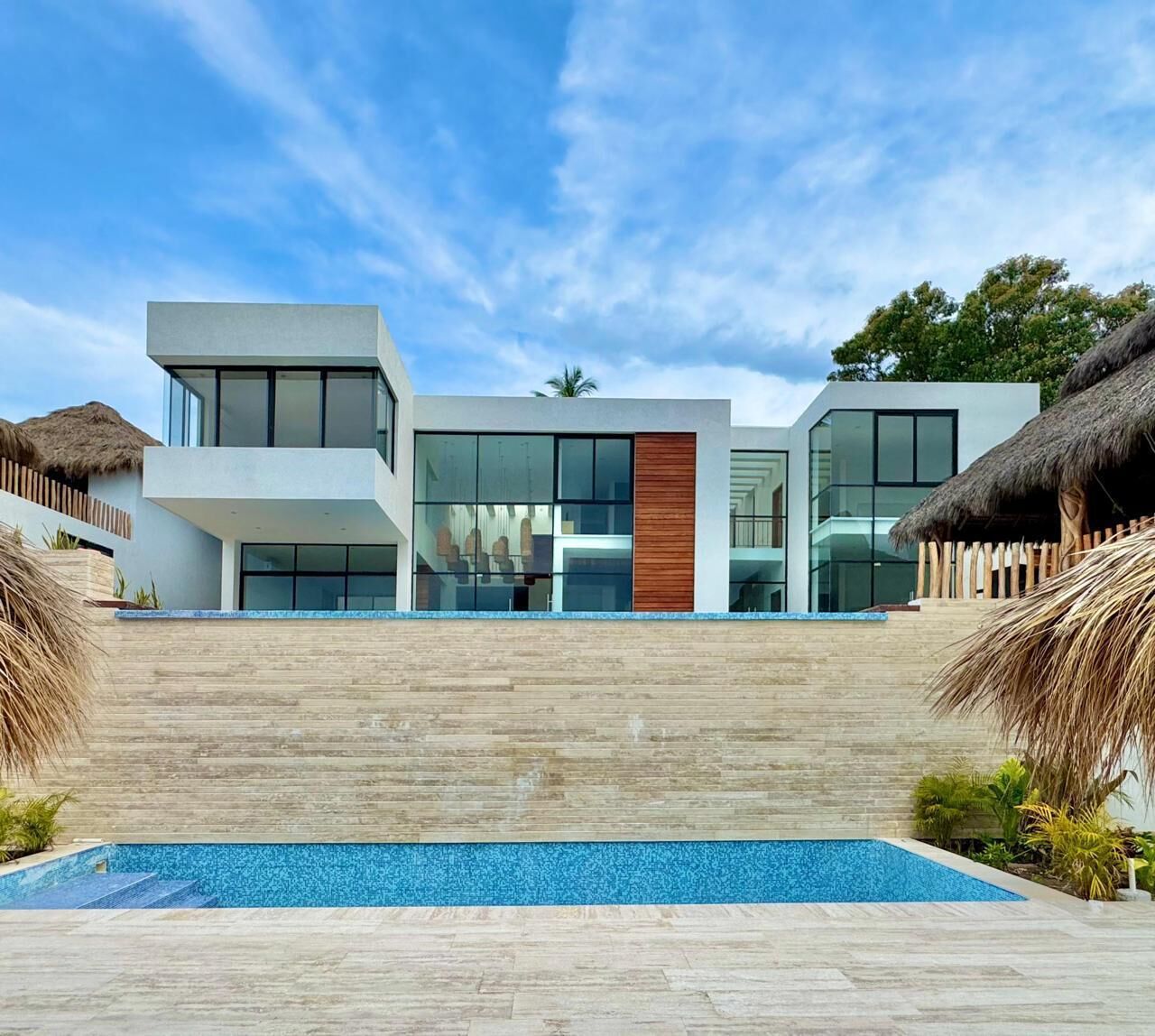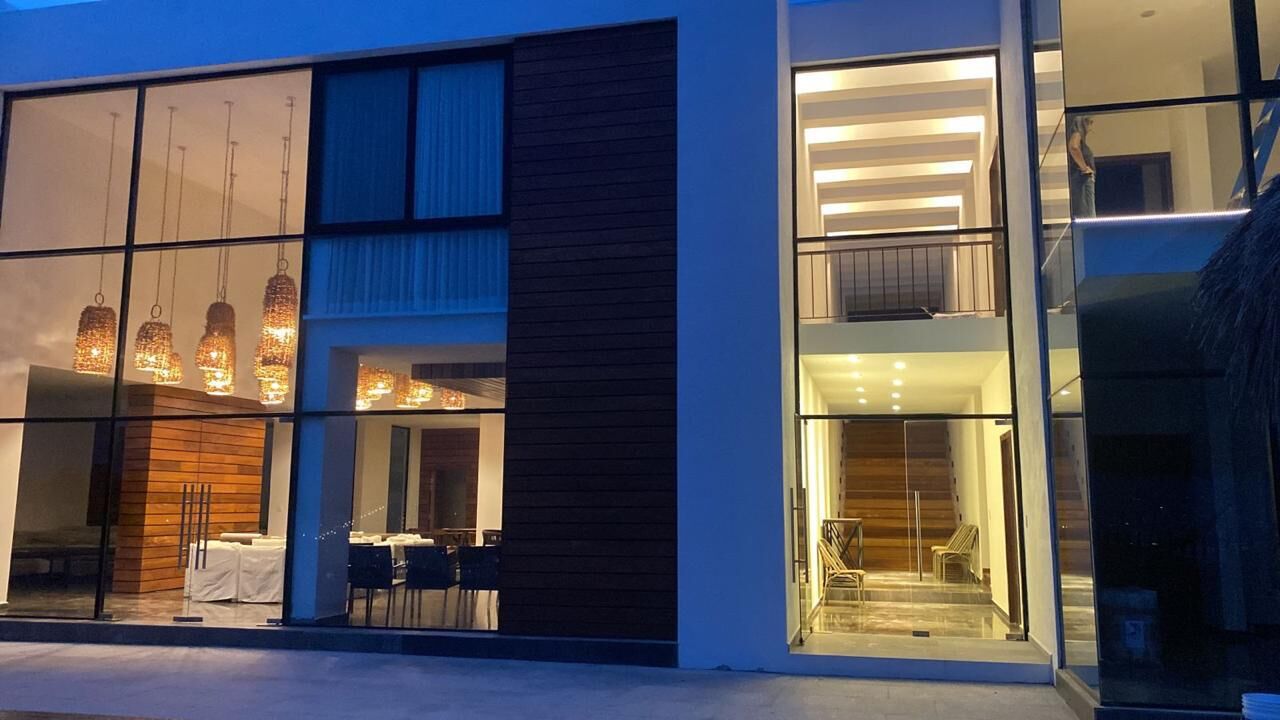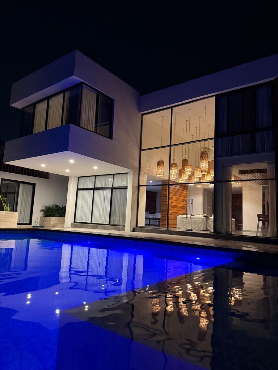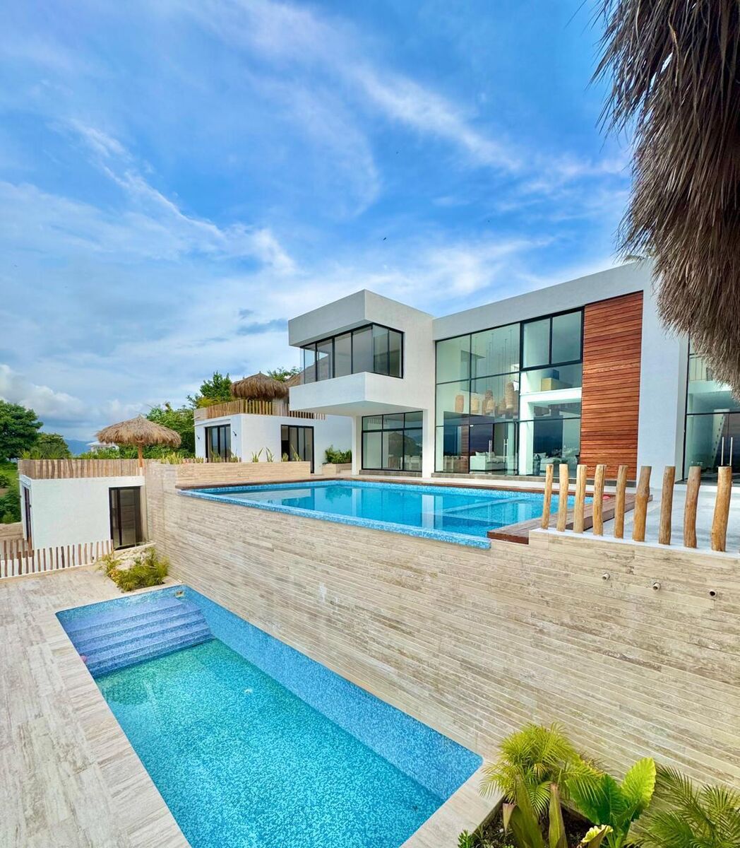 Featuring Covered garage for 6 cars, Main entrance doble high with a very spacious living room dining room with a modern kitchen, 2 swimming pools, equipped with a palapa, with 2 incredible terraces with stunning views, Six seats in a home theater Amazin Views of the sea 3 bedrooms on the upper floor with full bathrooms.\