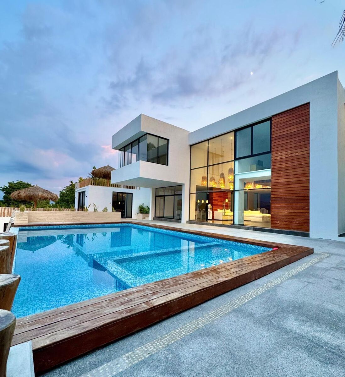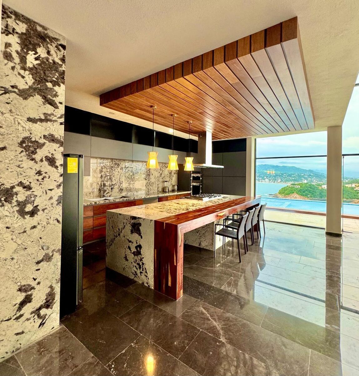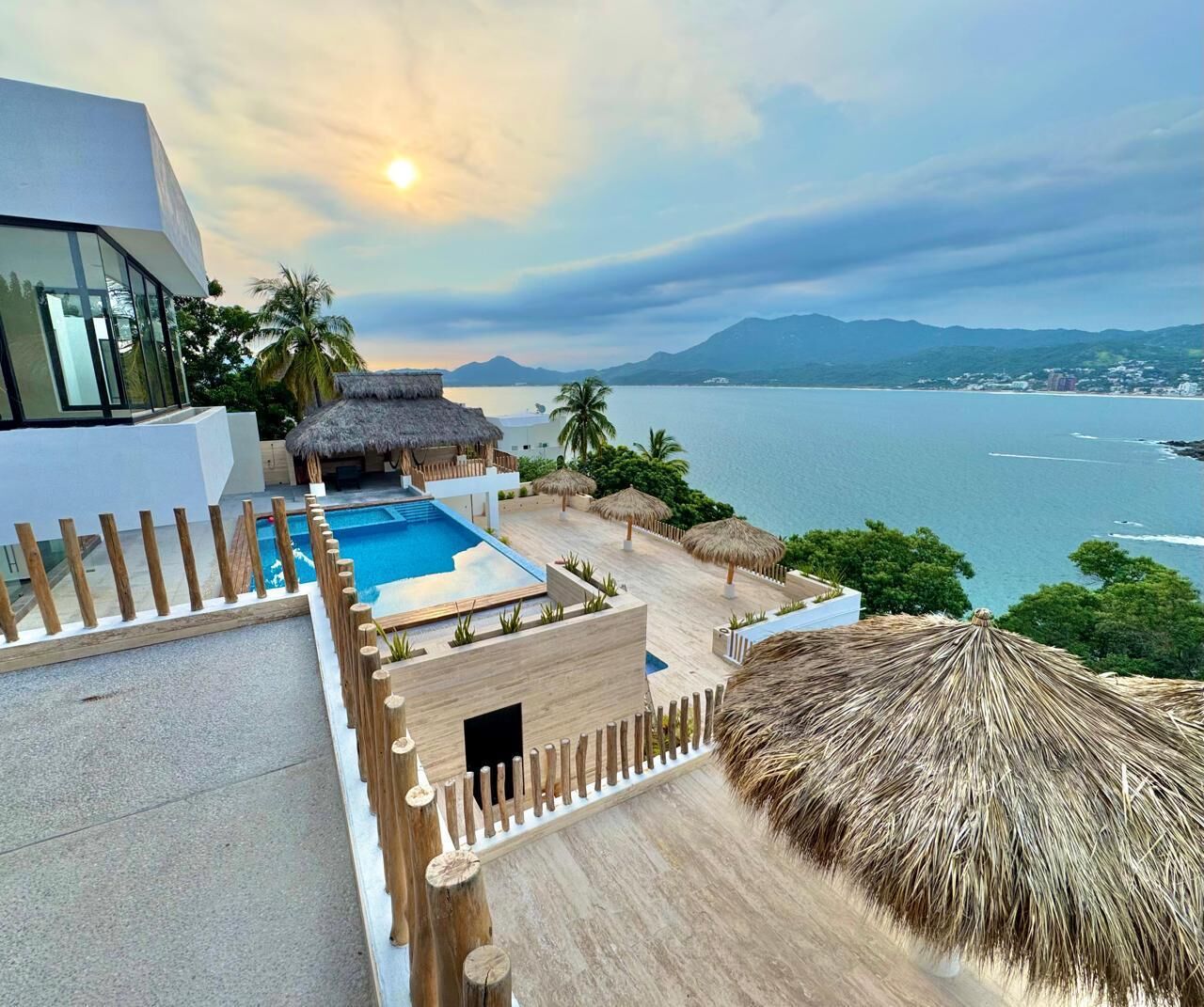 Featuring Covered garage for 6 cars, Main entrance doble high with a very spacious living room dining room with a modern kitchen, 2 swimming pools, equipped with a palapa, with 2 incredible terraces with stunning views, Six seats in a home theater Amazin Views of the sea 3 bedrooms on the upper floor with full bathrooms.\