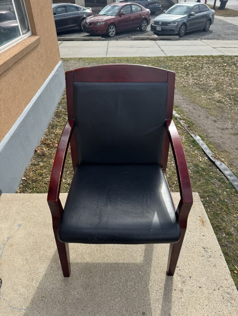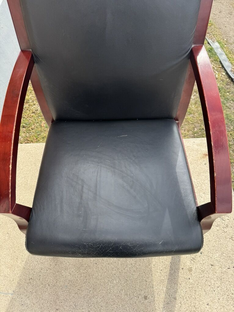 VenmoLorell Bonded Leather/Wood Guest Chair, Black/Cherry in good condition $15 Accept cash or Venmo Hablo Español
