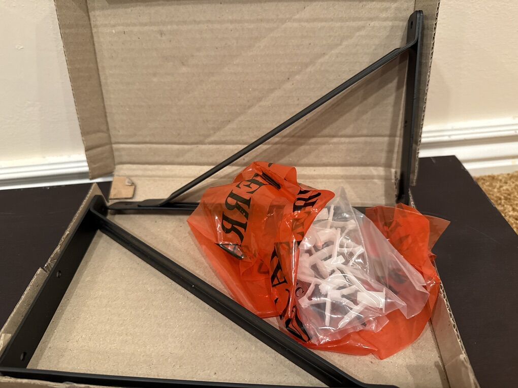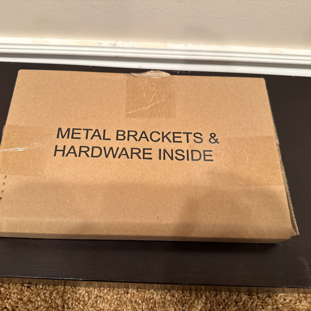 Shelf With Metal Brackets And Hardware Dark brown 36” wide 9.5” deep 2” tall