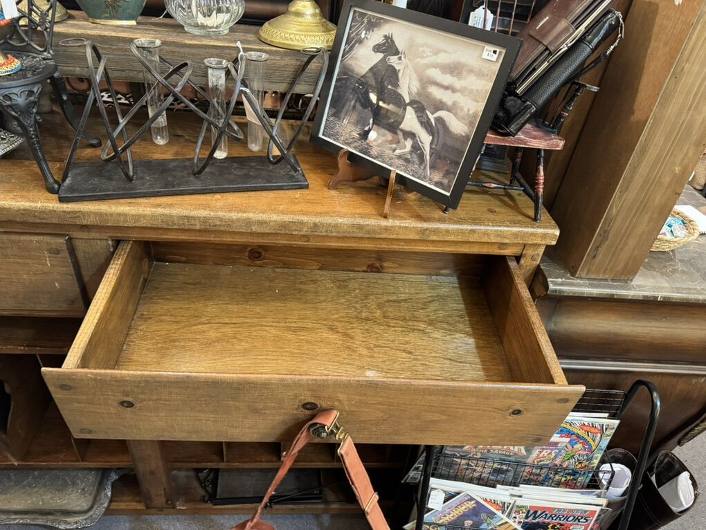 This lovely vintage buffet is all original with storage for records underneath and 2 drawers. It is on wheels so it’s easy to move room to room and could be used for many different things.