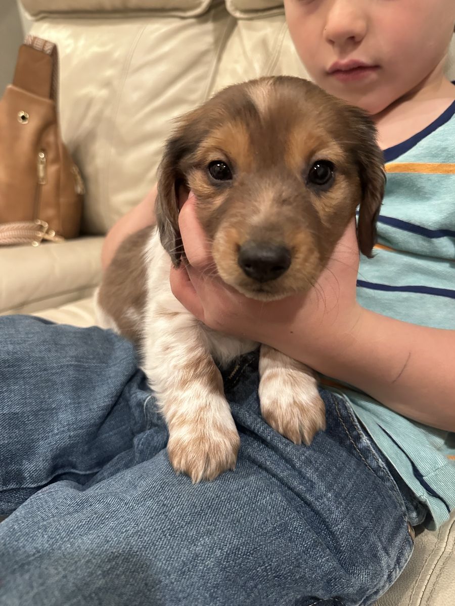 If you’ve been looking for the perfect little companion, these boys are it! Our sweet Dachshund puppies were born January 19 and will be ready for their new homes March 9 at 7 weeks old.