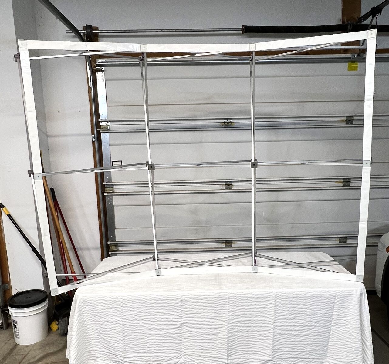 Venmo6.5 ft x 5 ft foldable pop up curved trade show tabletop pop up display frame with preinstalled velcro strapping. Lightly used and in excellent condition!