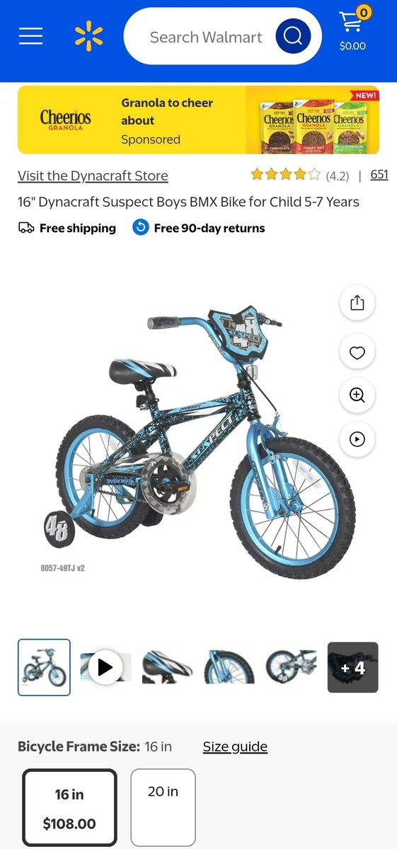 PayPal16" Dynacraft Suspect Boys BMX Bike for Child 5-7 Years. Training wheels not included