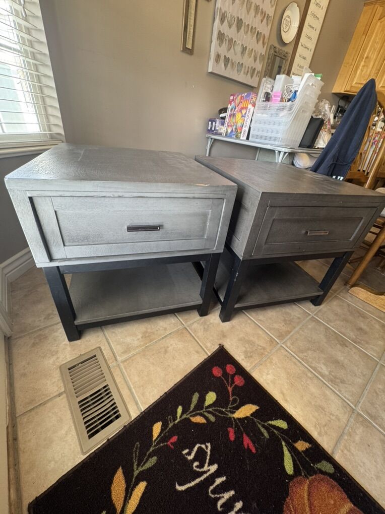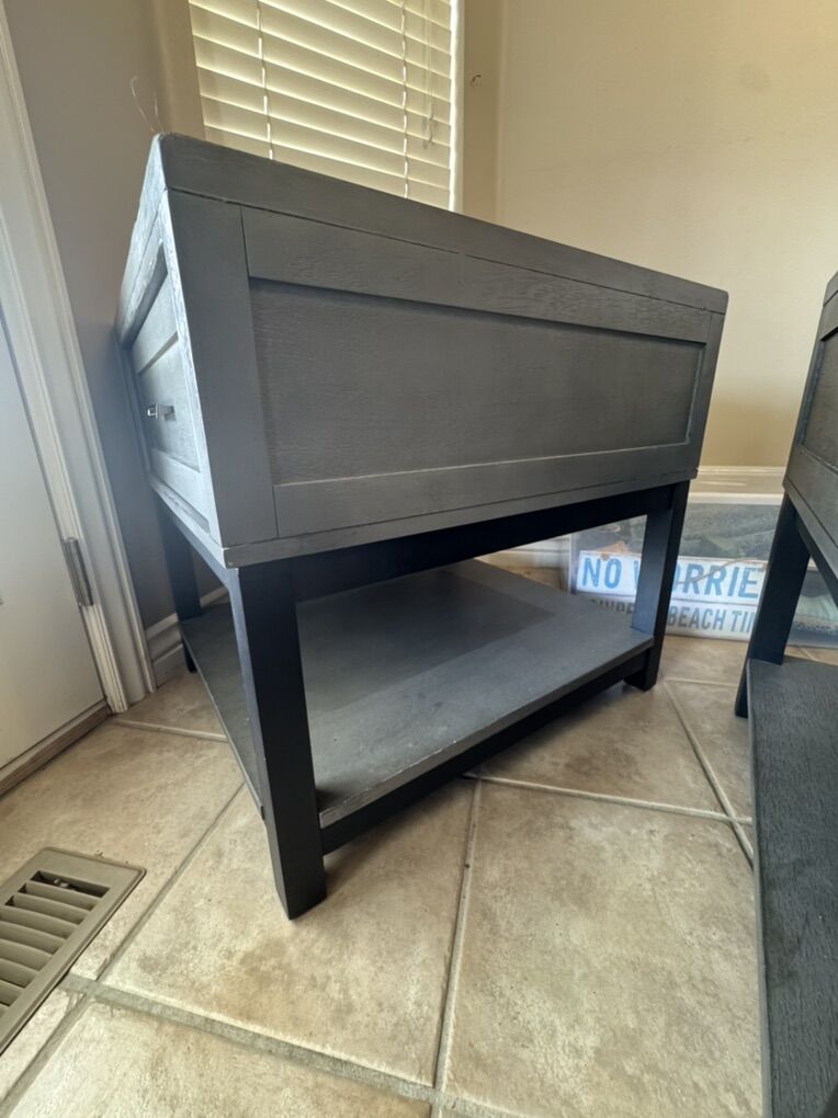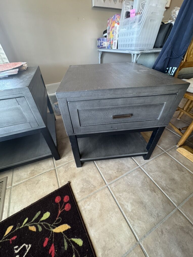 VenmoOne end table with drawer. Drawer works. Could be used as a nightstand as well. Measurements - 27 inches deep 24 inches wide 24 inches high