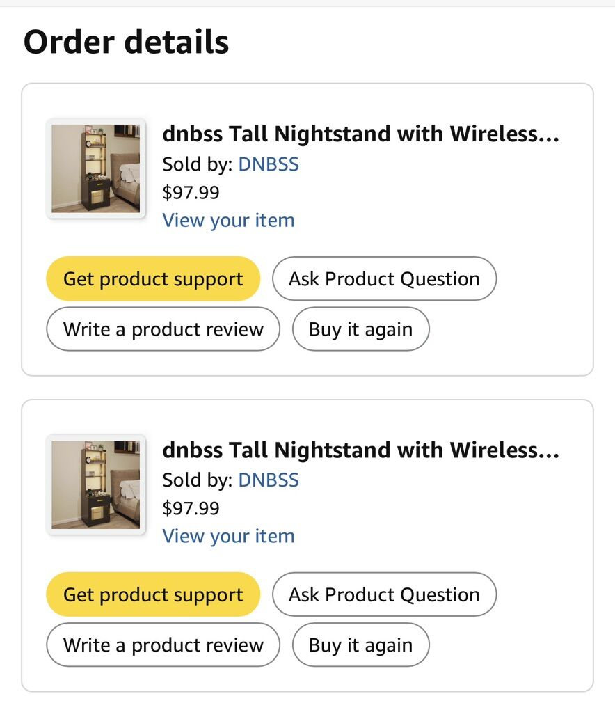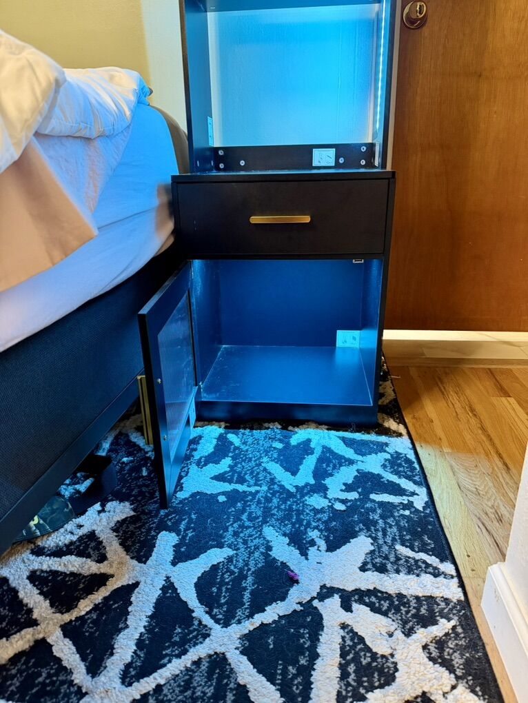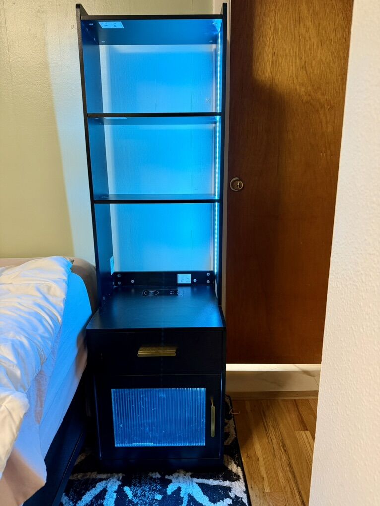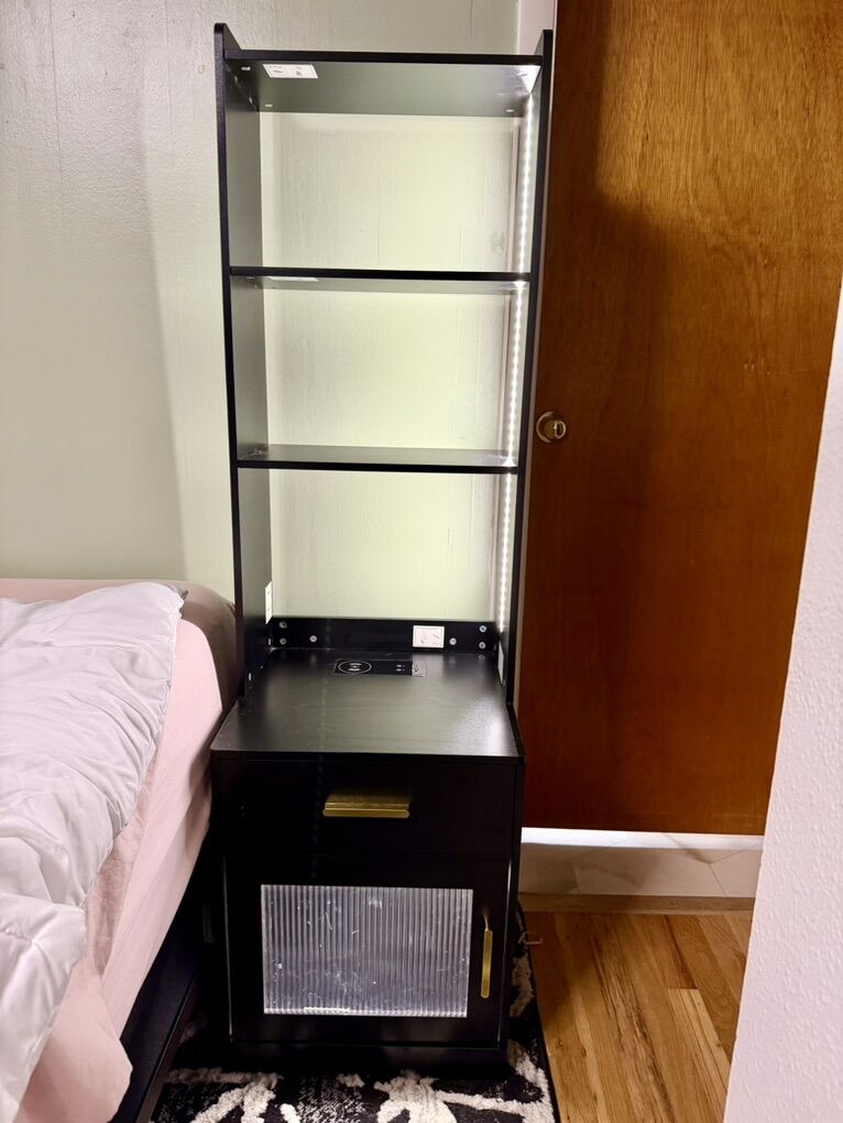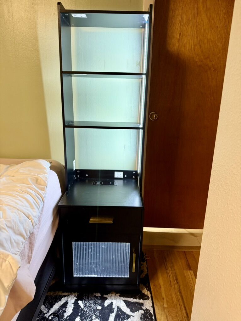 Venmo2 nightstands with shelves, motion censor lighting with 3 different lighting options and brightness, smart charging station, bottom storage cabinet. Nothing is wrong with them and in great condition. Will sell together or separate. Dimensions and order summary from original purchase in pictures. Price is for the set.