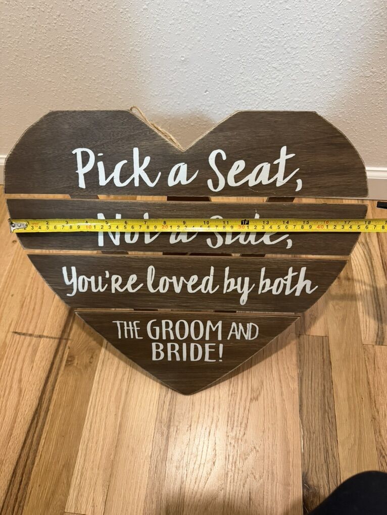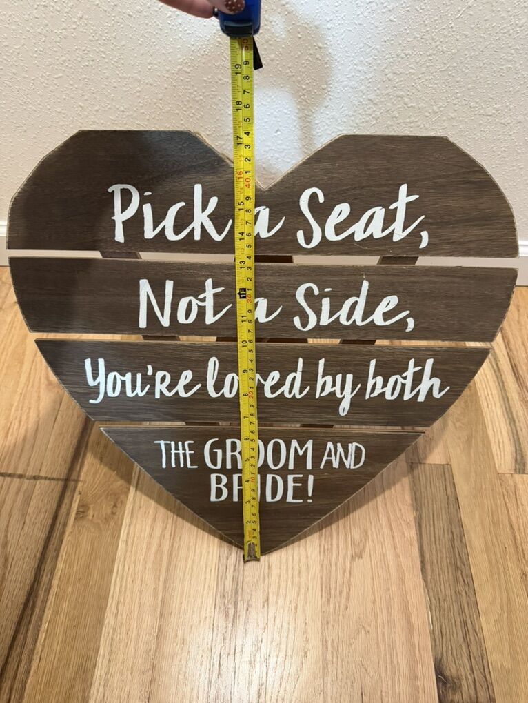 VenmoWood wedding ceremony sign originally bought from Hobby Lobby. Not on their website anymore. Measures about 18in x 18in shown in pics.