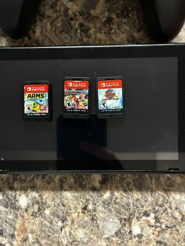 I’m going to move that and this Nintendo switch is just laying around. I don’t use it no more and I’m trying to get rid of stuff with three games. also includes 128 GB extra Normally only has 50 GB.