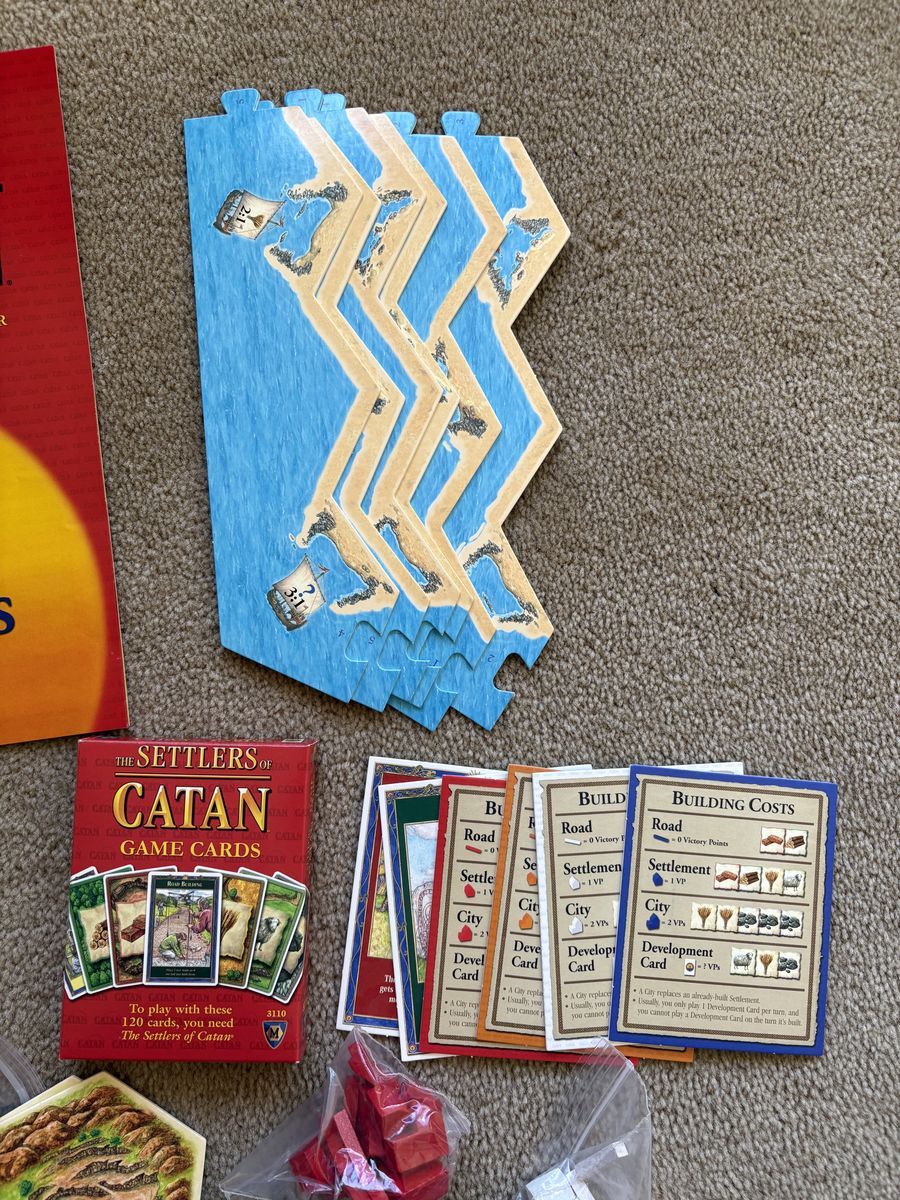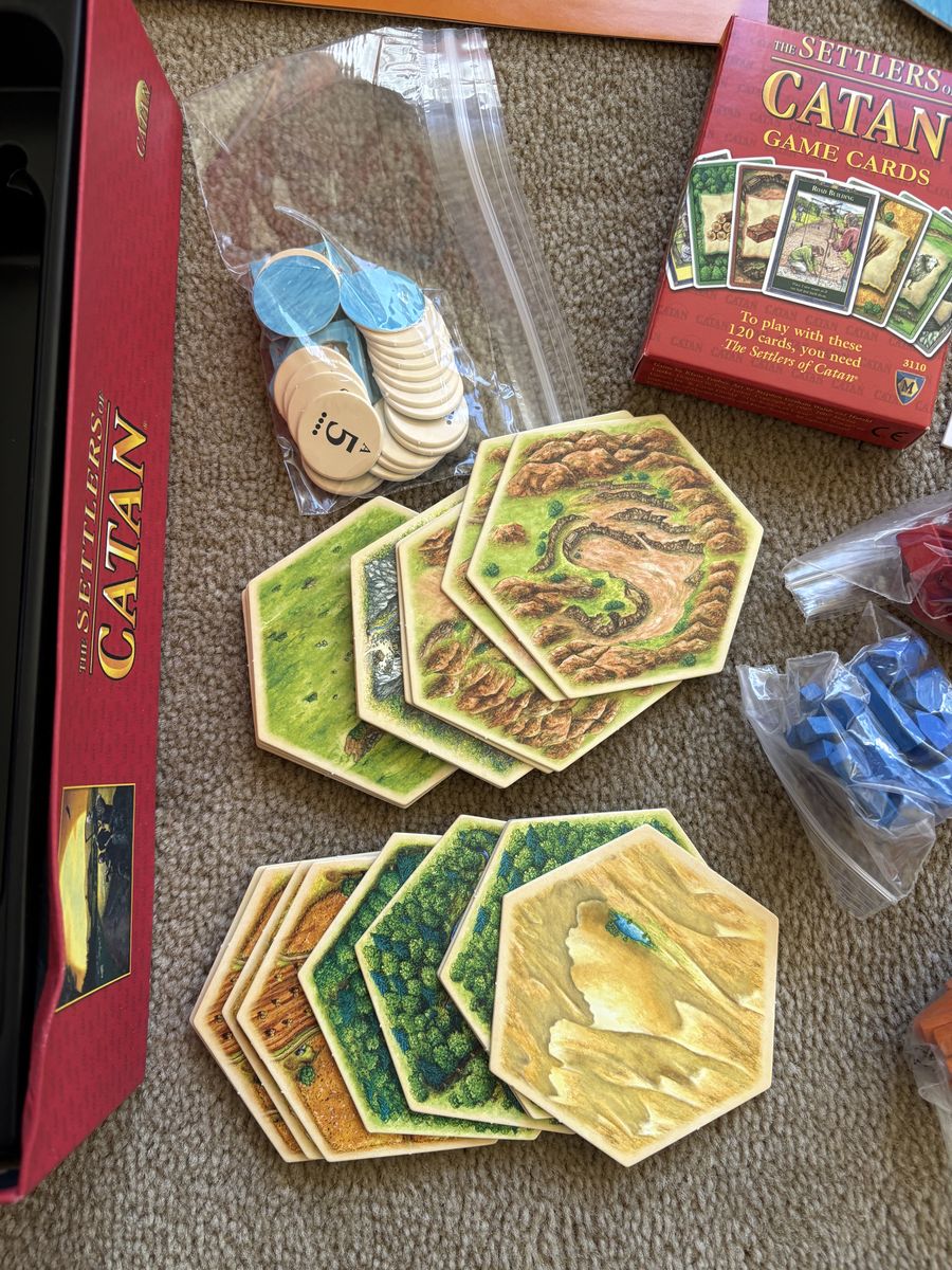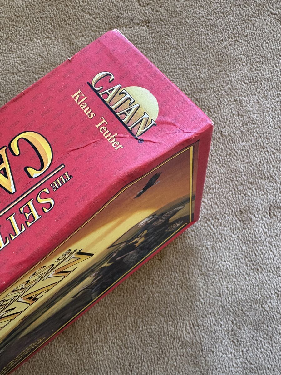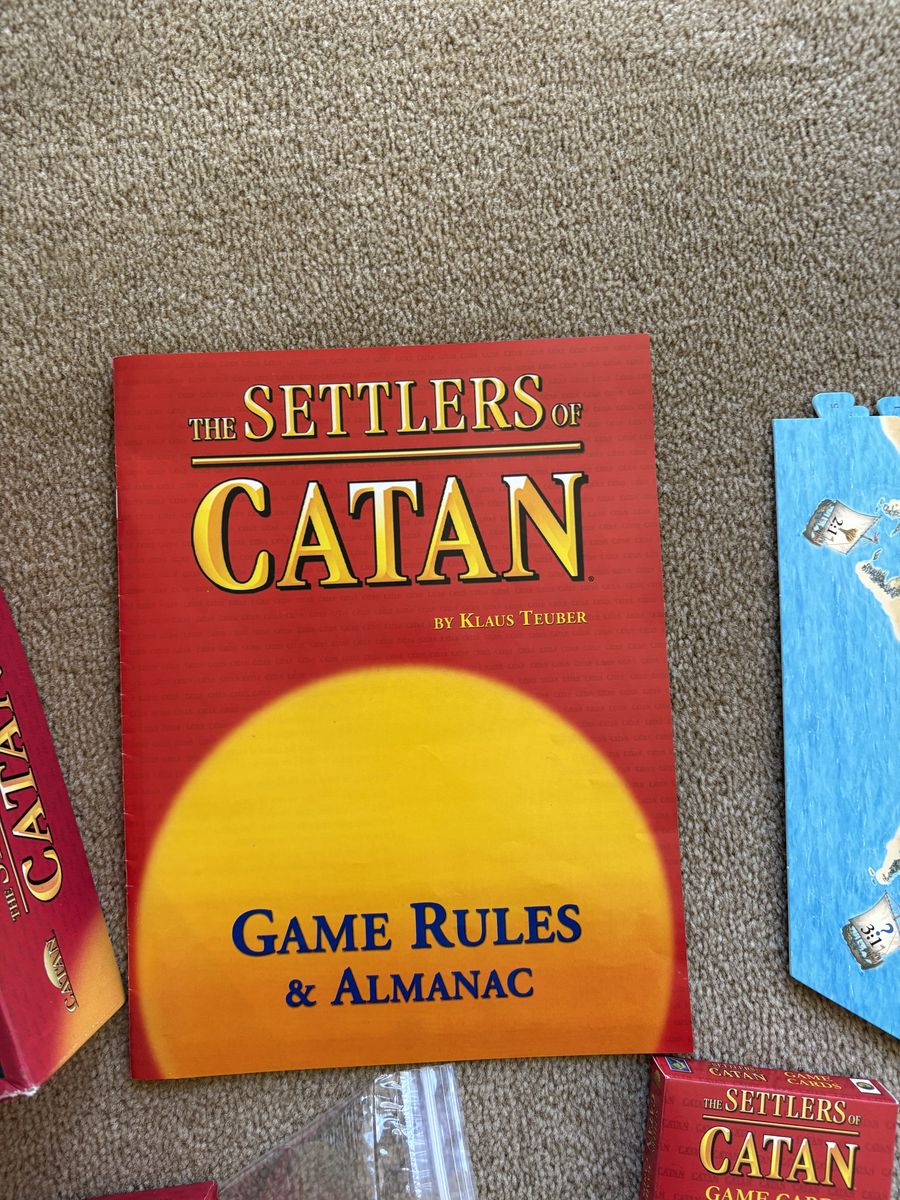 COMPLETE 2007 The Settlers of Catan: A game of discovery, settlement and trade. Award winning game by Mayfair, Klaus Teuber, 2007. Complete, no missing pieces. Very good condition. Box slightly bent (see photos). Text only. Cash or Venmo. Discount on multiple items.