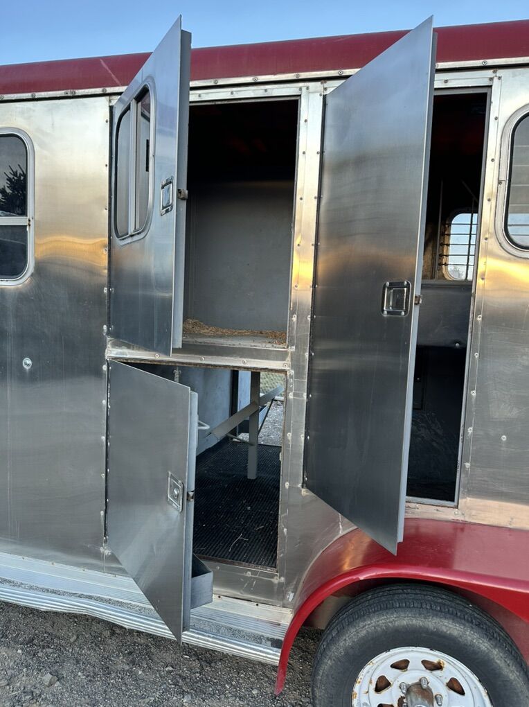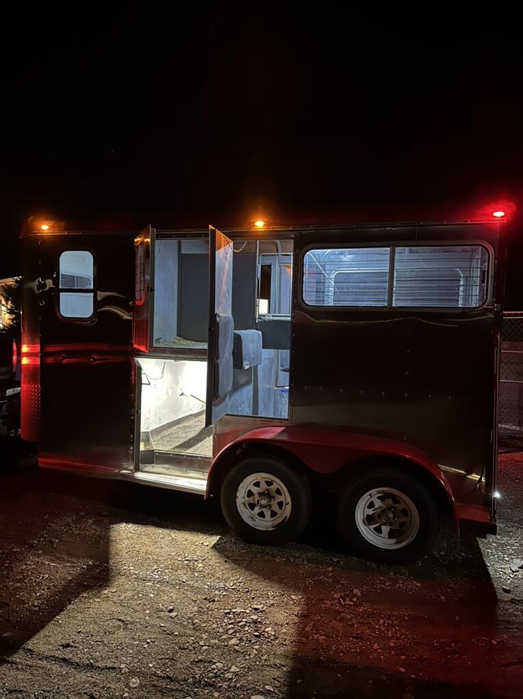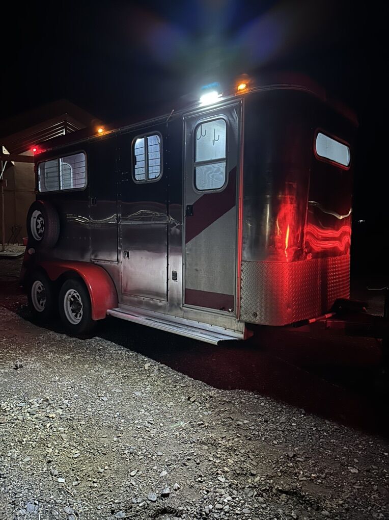 Stainless steel, quality built 1987 Rustler straight load 2 horse trailer. All new wiring with all new LED lights with switches throughout. Brand new steel wheel wells. Newly installed jack. Good floor, feed mangers, saddle racks, separate dressing room. Pulls excellent, great trailer.