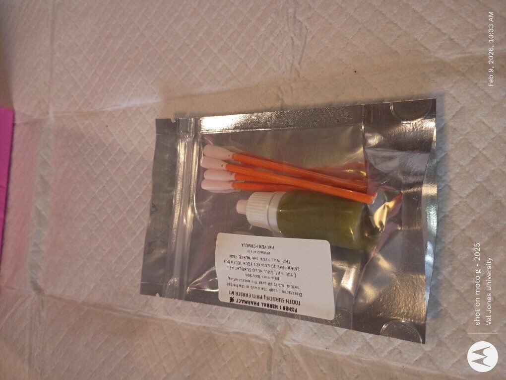 Directions :soak swab rub mouth completely gums & teeth and this formula ki### the nerve..