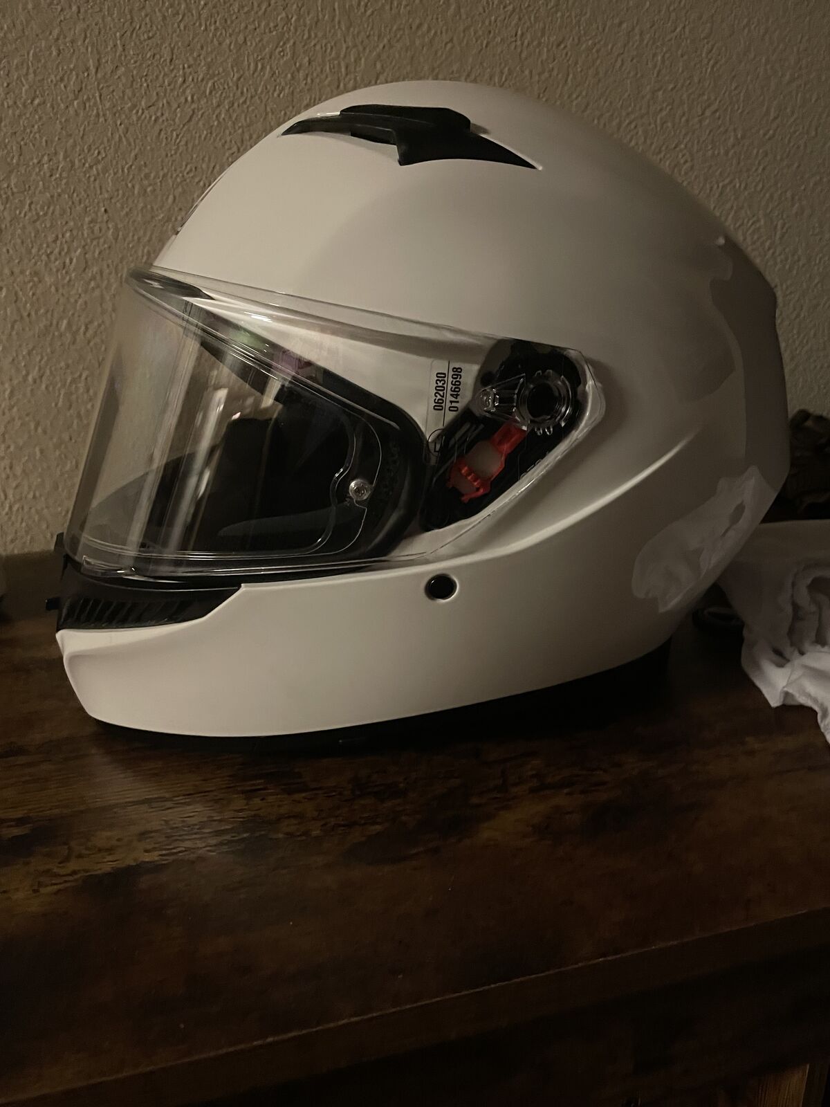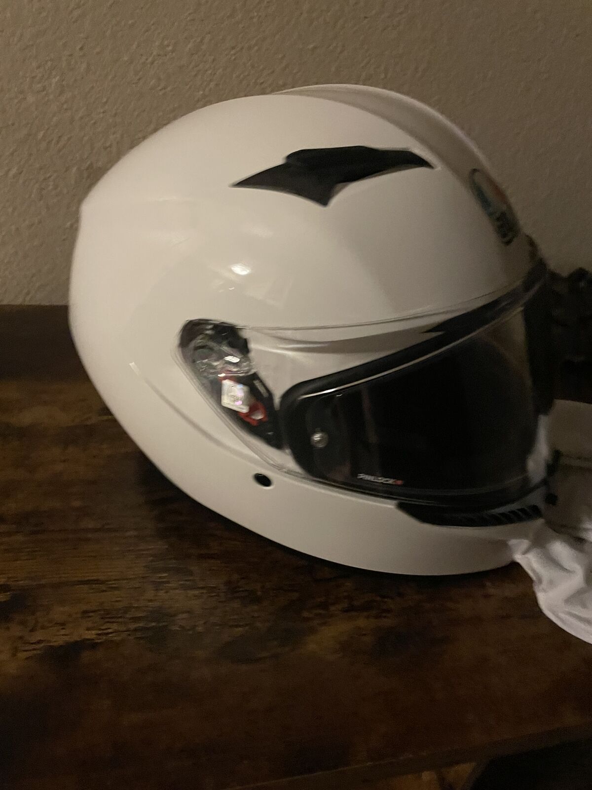 Brand new still in shipping box AGV K3 size large white comes with pinlock ant fog lens and soft case. photos are of my current helmet, box is sealed never been opened , thought my current helmet got stolen but it got turned into my leasing office , before that happened I bought this helmet as a replacement came From Germany now with tariffs they want 70 dollars to return so I'm trying to get what I paid for it . call or text