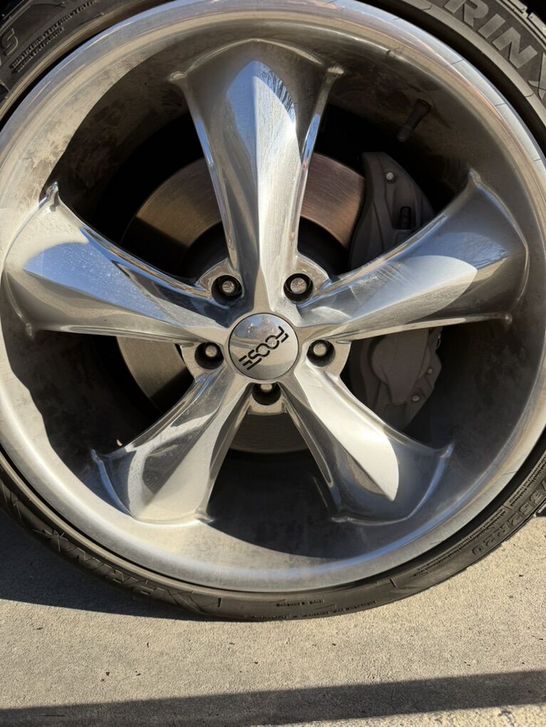 I have this set of Rims on my mustang just not a fan of the chrome anymore. Nothing wrong with them in amazing condition, no chips, curb rash or rust. Just wanting to get a black set. Lmk know with questions. Willing to trade or would want around 1,000$. Go for about 2,000$ for the set new