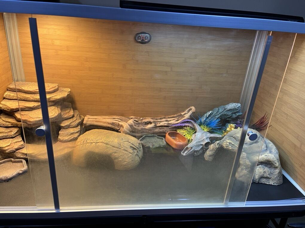 VenmoSelling my zenhabitat enclosure 4'x2'x2' Reptile Enclosure - The Zen Habitat 3.0 wood pvc enclosure unfortunately my bearded dragon got to old need to sell it’s in perfect condition except the sliding doors do to scratching comes with lightning a 150w basking bulb and fixture and another 75 W bulb with fixture and uvb light strip with a light and two brand new light strips comes with two floor mats three caves one log one aquarium, structure, skull, couple dishes everything‘s disinfected and cleaned. Let me know if you have any questions folding table not included.