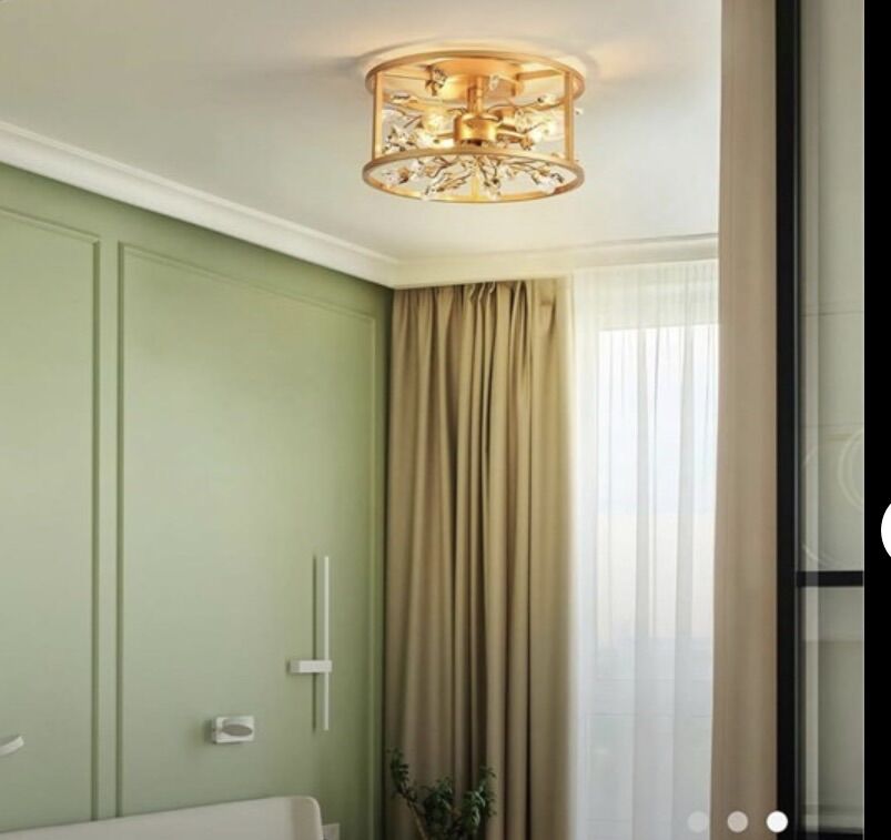 PayPalNew in box. FCFS. This flushmount fixture perfect combination of metal frame with crystal. Blending modern and luxury styles. This close to ceiling light is capable to add a luxurious but unassuming touch to your house while meeting your daily lighting need, matches most styles of furnishing and adds a beautiful decor to your home. Dimensions & Easy Installation: Diameter 12-inch, Height 6-inch. Requires 3 x E12 bulbs (Bulb NOT included). Instruction manual inside, all mounting hardware for quick and easy installation. Dimmable: This gold ceiling lights can be dimmable for a different effect when attached to a dimmer switch and dimmable bulb. Wide Application: The crystal flush mount ceiling lamp is designed to blend into any indoor decor, perfect for living room, hallways, bedrooms, foyer, kitchen, etc.