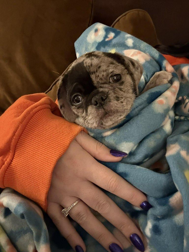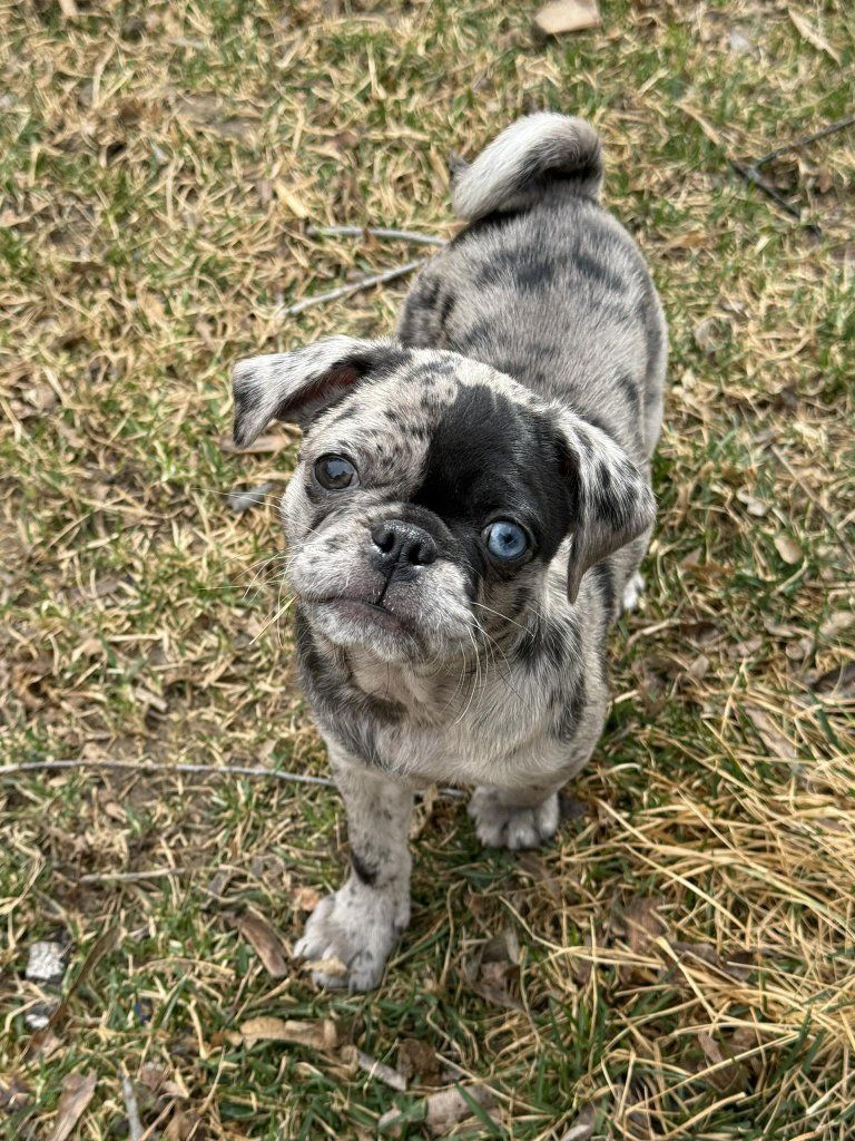 BEAUTIFUL purebred pug - She is a RARE Blue Merle, with one brown eye and one blue eye.