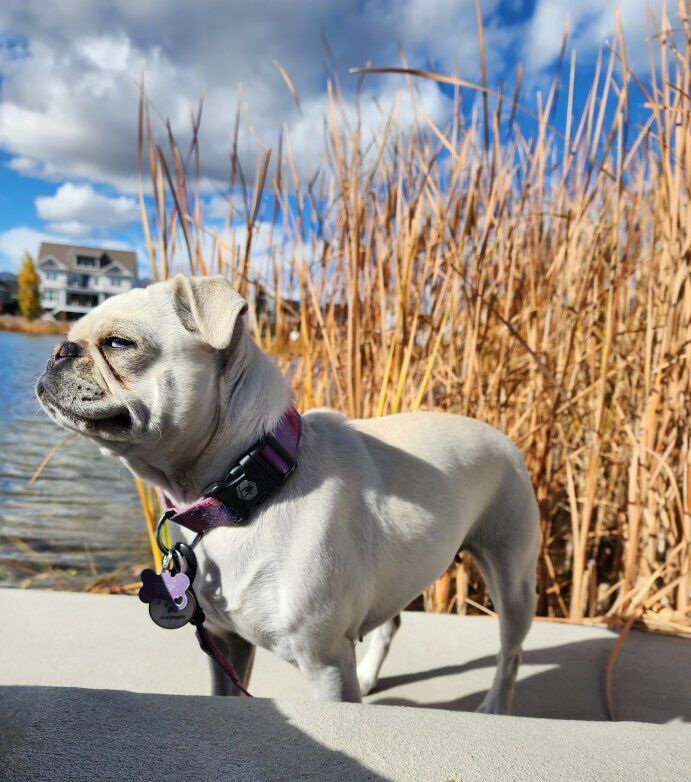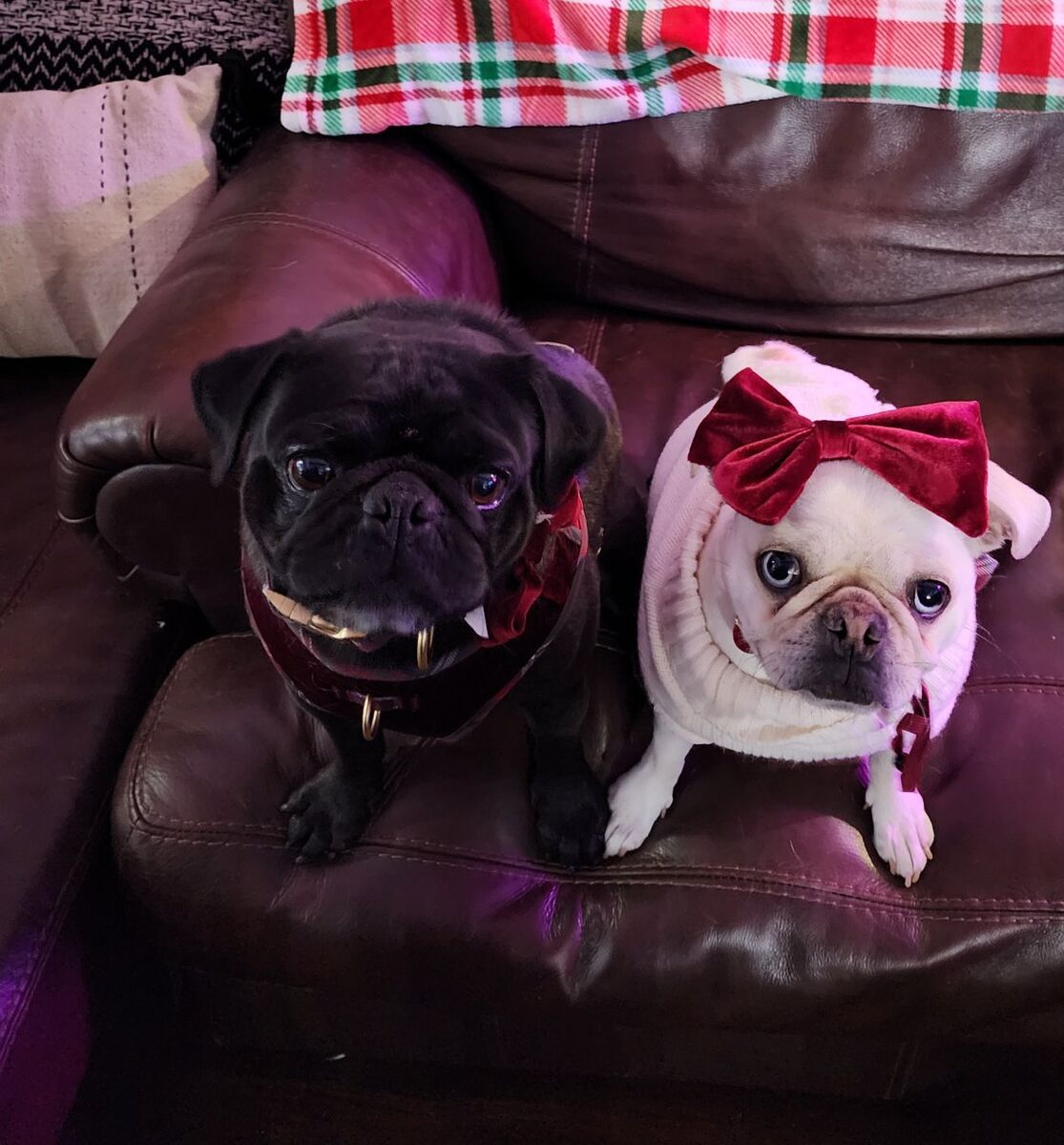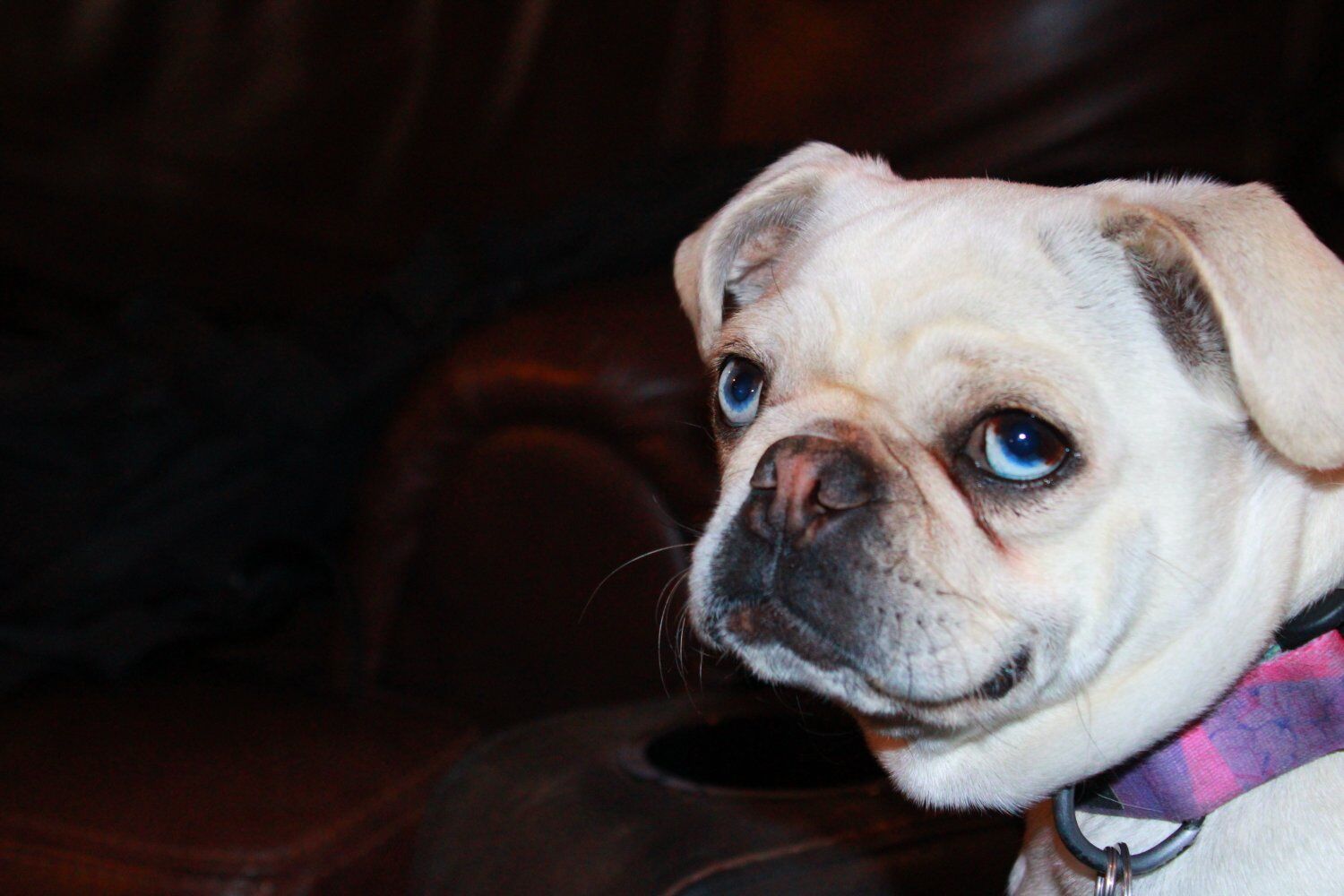 ************************** Mom is a gorgeous 100% white pug with Blue heterochromia eyes