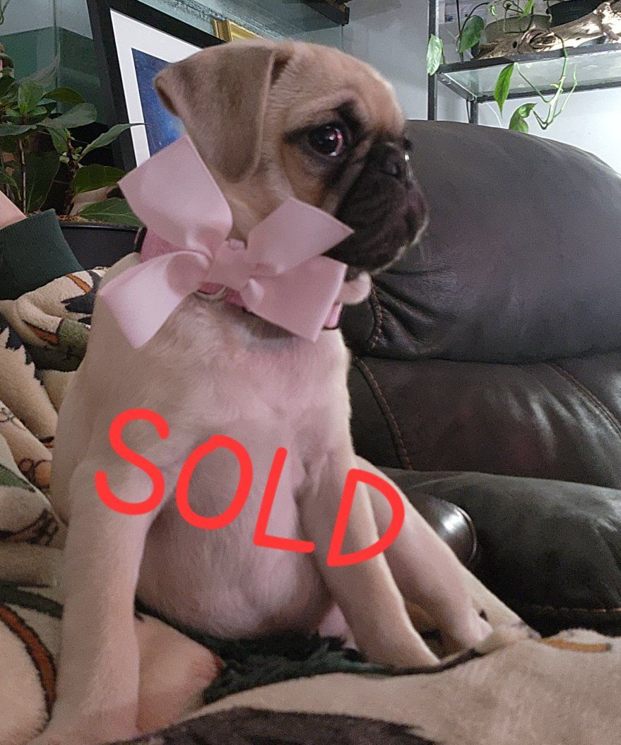 Male #3: Black Male Brown Eyes $1000 ************************** Mom is a gorgeous 100% white pug with Blue heterochromia eyes