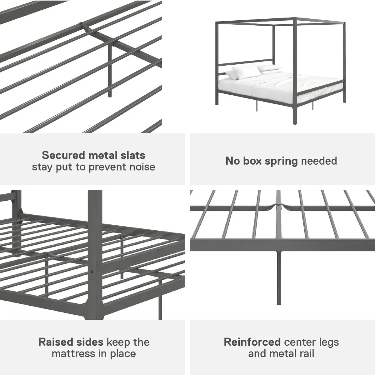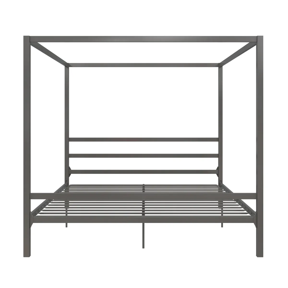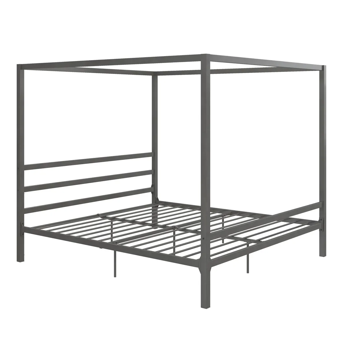 Upgrade your bedroom with this sleek and modern canopy bed featuring a durable metal frame and a clean contemporary look. Perfect for creating a stylish and elegant bedroom setup.