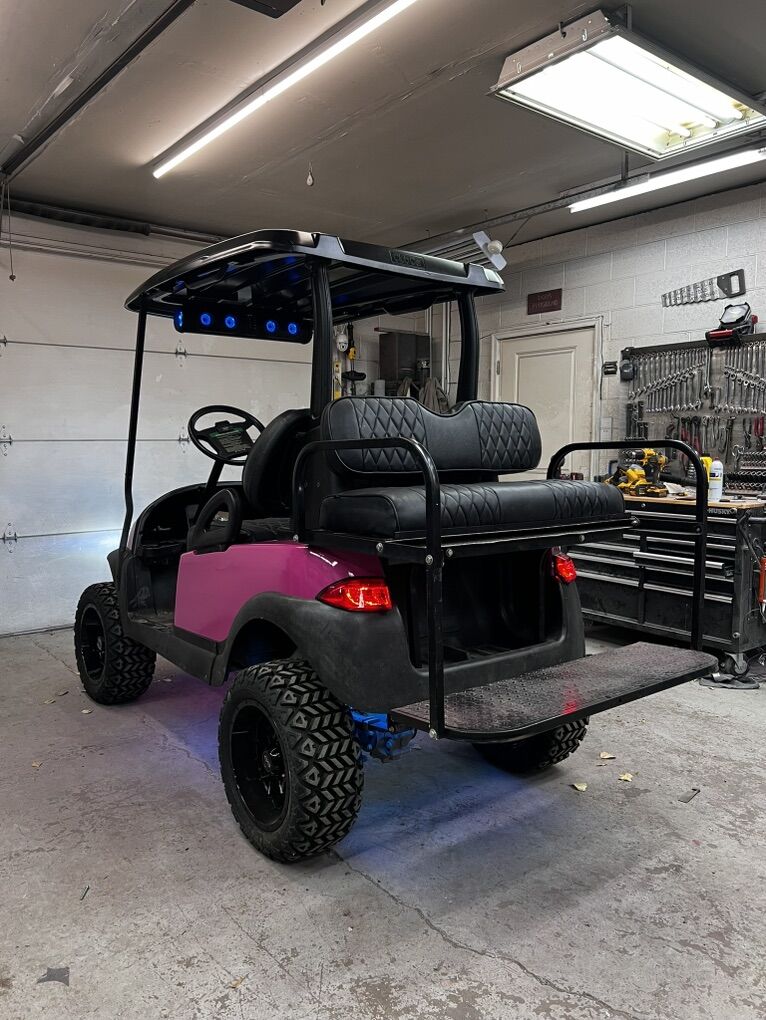 CashAppThis golf cart has been refurbished has a brand new lithium battery, sound bar, headlights, LED lights underneath windshield and seat for the back. Golf cart is fast and runs great!