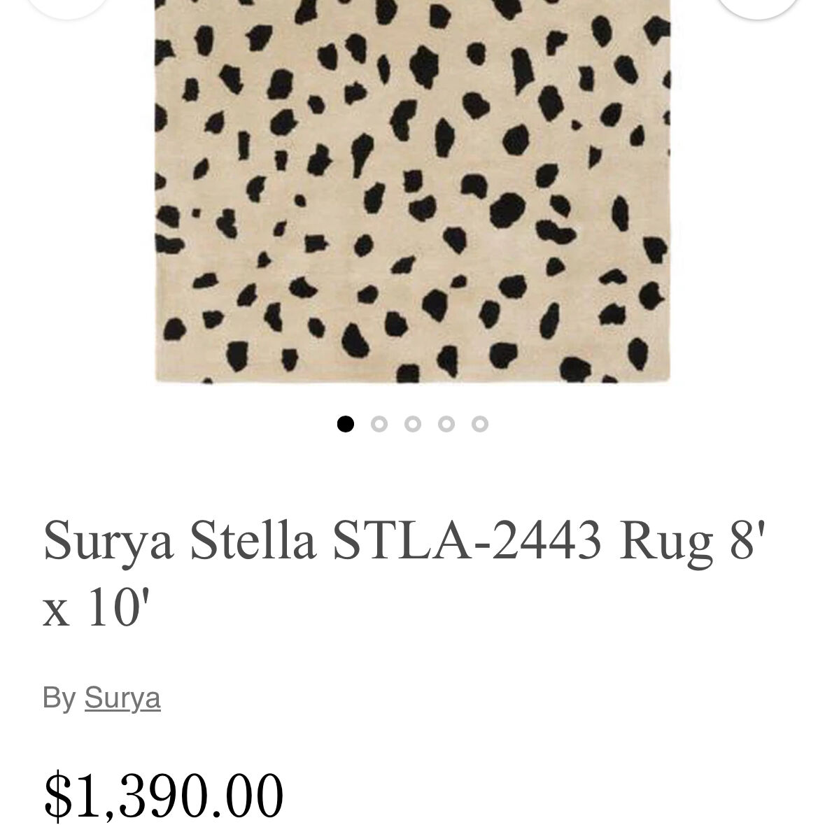 Size: 8x10 Color: Dalmatian Print Collection: Stella Design: STLA-2443 Condition: Great condition. Also just had rug professionally cleaned by carpet cleaners. So ready to go to a new home! Some free home