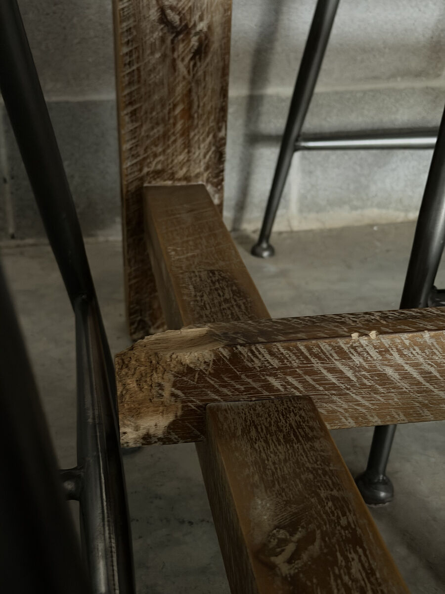 Product Features Thick concrete-style top – heavy and durable Solid wood base with rustic character Metal chairs – sturdy and long-lasting Industrial / modern designer style Comfortably seats up to 6 people Large, oversized dining table