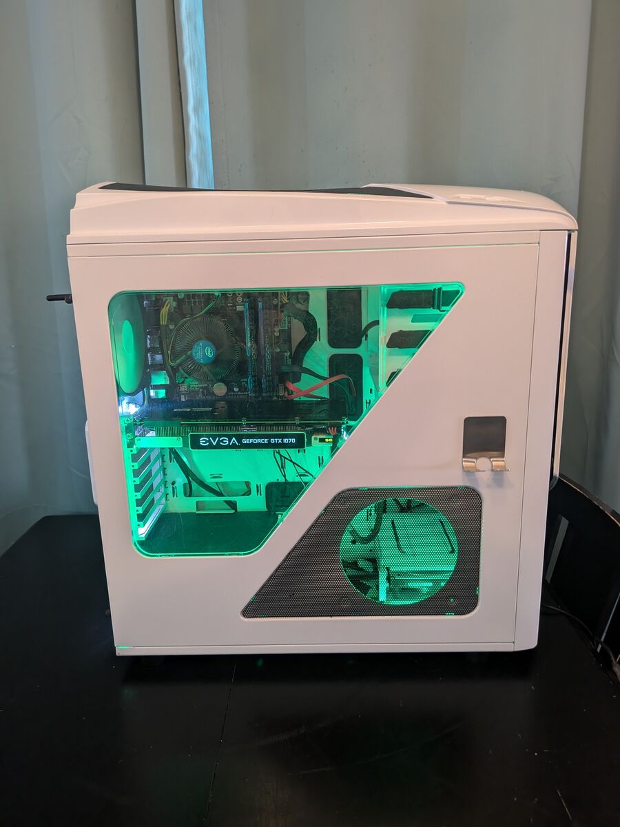 Specs: I7 4770 (xeon 1245v2) 16GB RAM GTX 1070 8GB GPU 128GB Boot SSD 1TB HDD 600W PSU