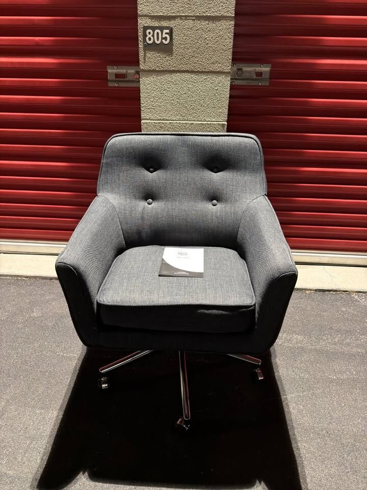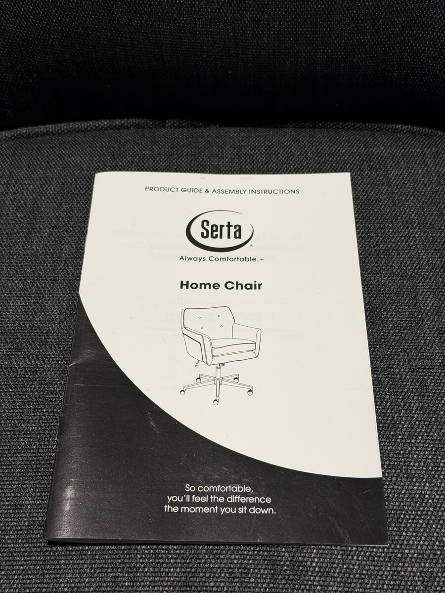 Brand New – Out of Box (Never Used) Add comfort and elegance to your space with this stylish Serta accent chair. The button-tufted design and charcoal upholstery bring a modern, sophisticated look to any room.
