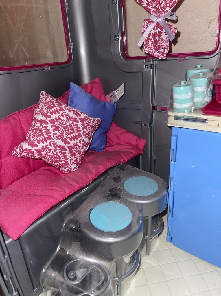 PayPalThis is a new RV camper trailer by Our Generation for 18” dolls. It includes the hitch to attach to a Jeep. So cute!