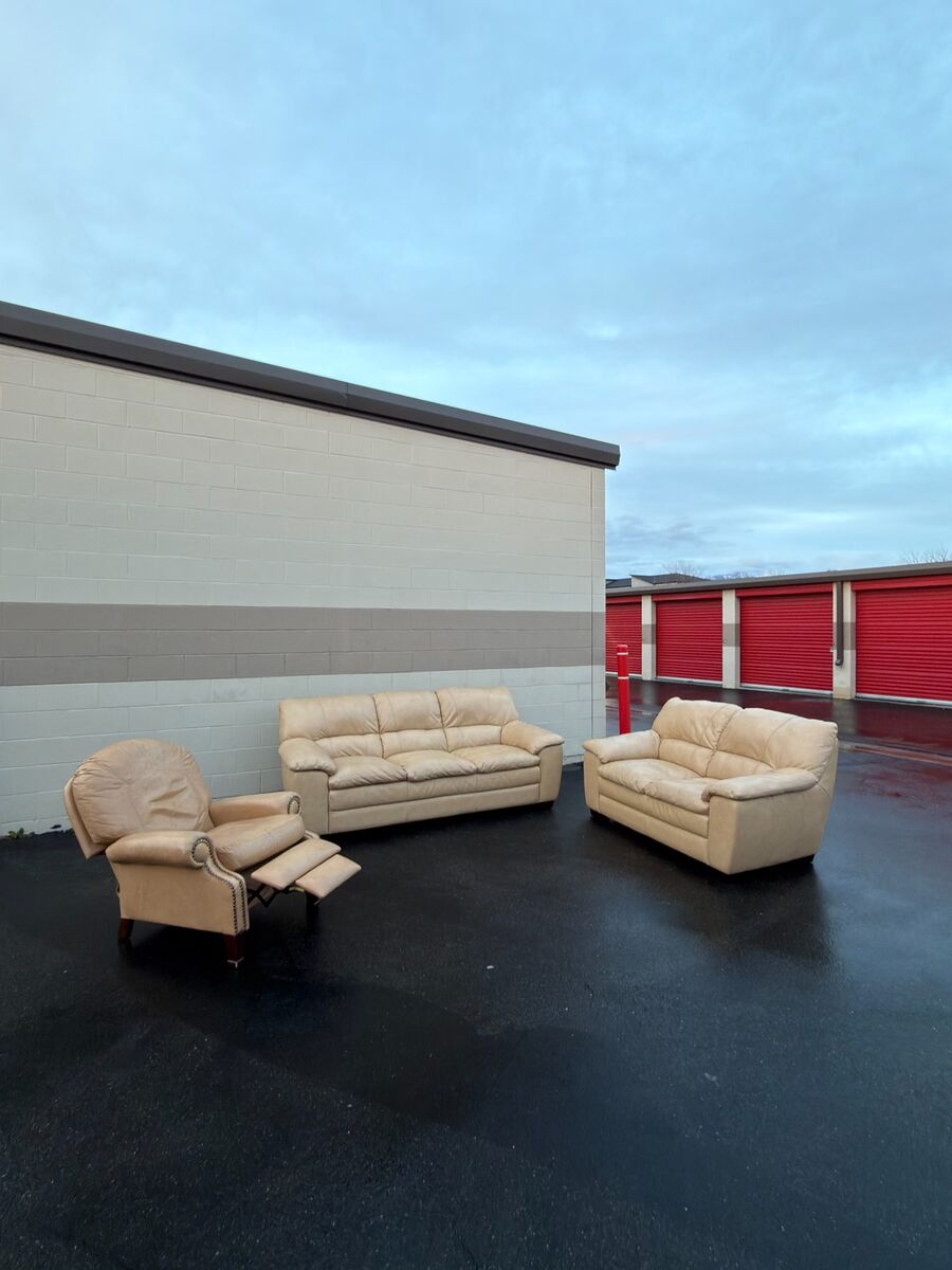 What’s Included ️ Full-size Sofa ️ Matching Loveseat ️ Bradington Young Vintage Leather Recliner (premium high-end brand)