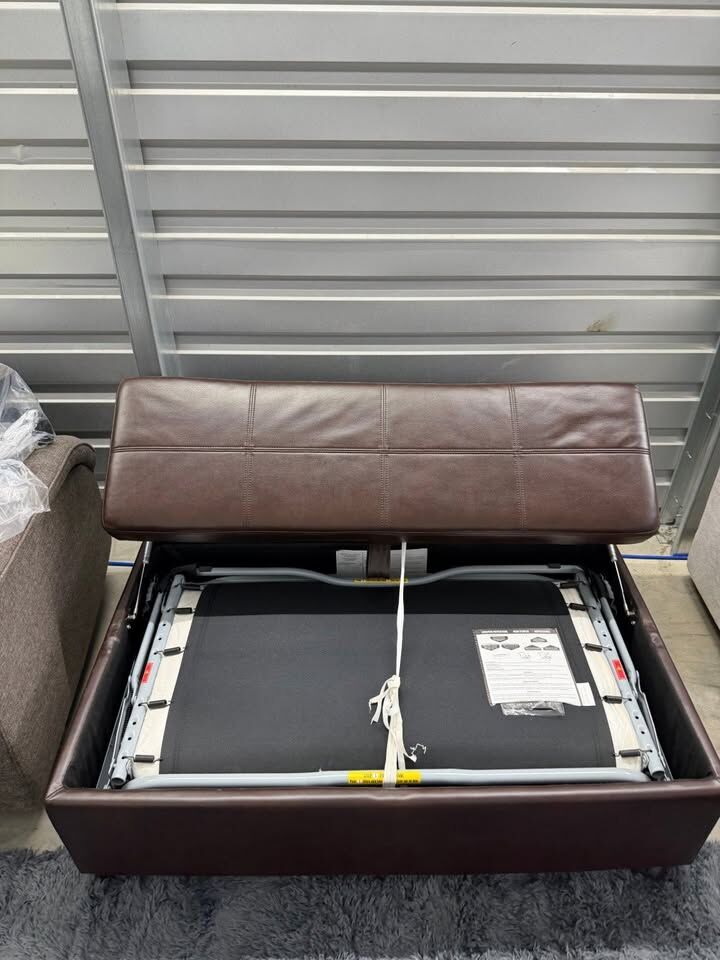 Highlights • Comfortable lounge chair for relaxing • Sleeper ottoman converts into a guest bed • Compact and functional – great for apartments or small spaces • Matching brown color – warm and easy to match • Costco quality construction