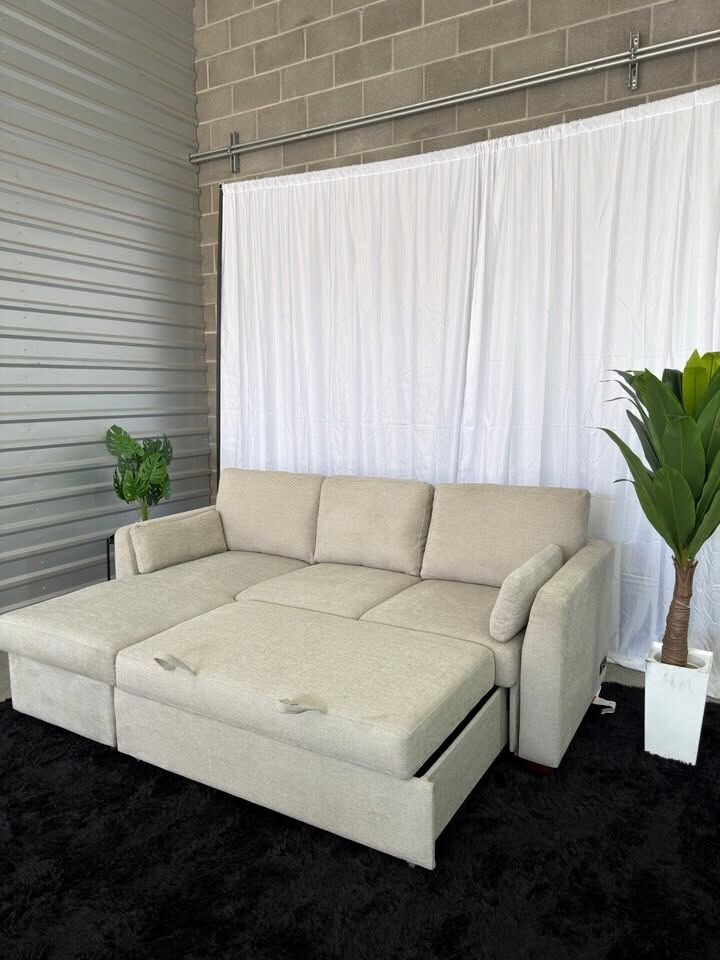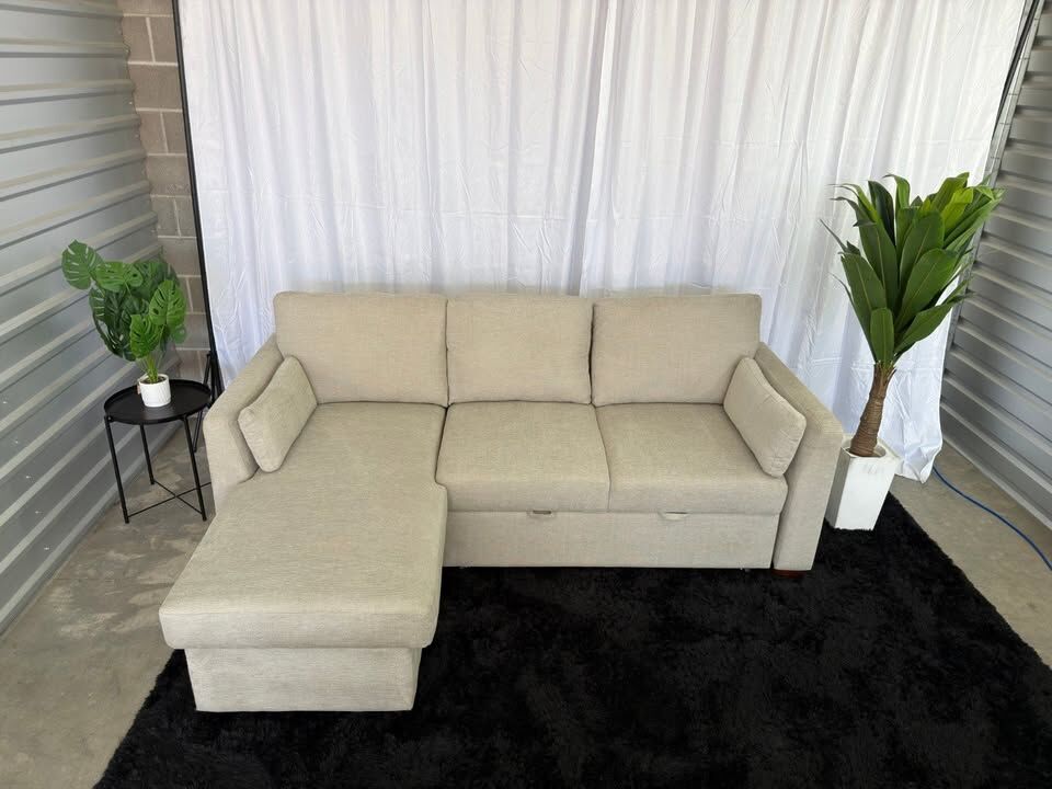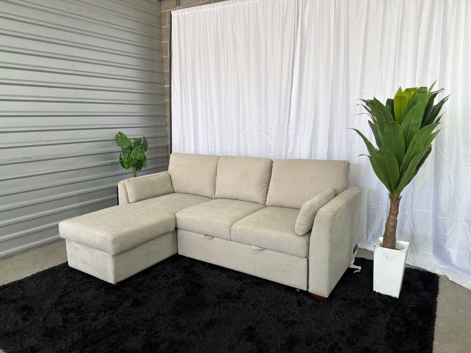Product Highlights Converts into a comfortable sleeper bed Reversible chaise – flexible layout for any space Storage compartment for blankets and essentials Neutral beige color – warm and easy to match with any décor