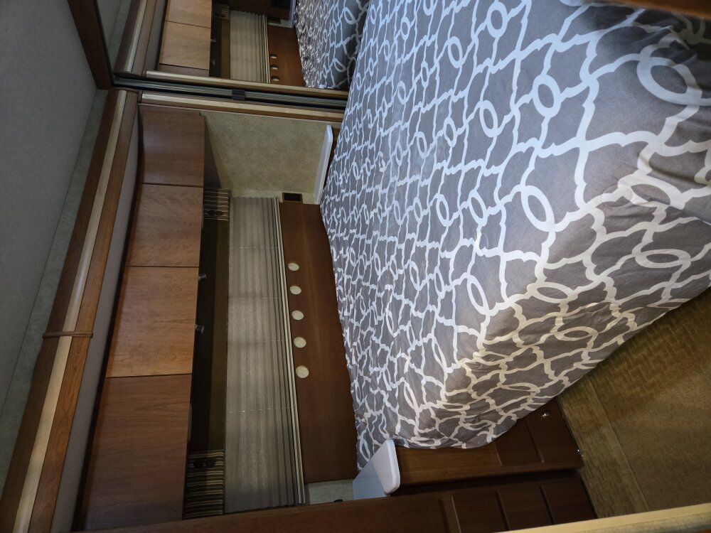 -Walk through bathroom -A lot of closet and drawer space -Table sofa -Couch turns into an inflatable queen bed