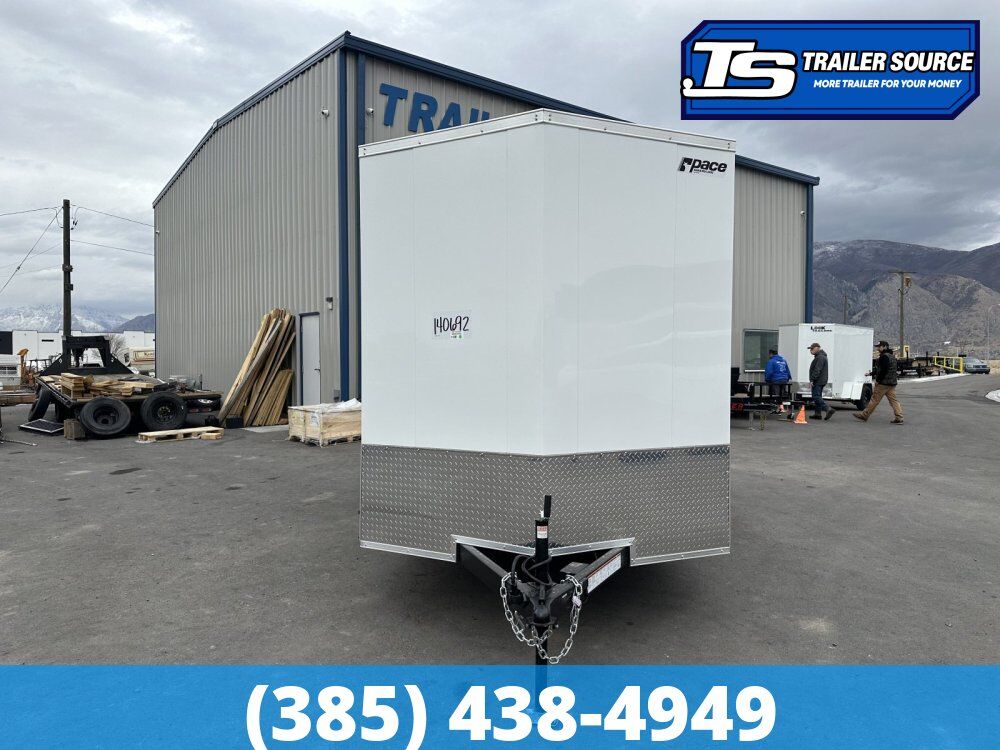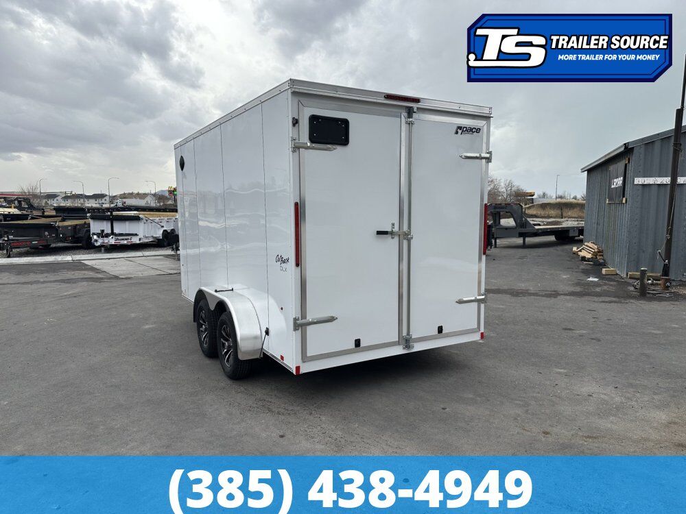 "More Trailer For Your Money" 7 x 14 Pace American Outback Deluxe 7K Enclosed Cargo Trailer – Ready To Work! 16" Cross Member Upgrade, Alloy Wheels, Barlock on Door, Barn Doors, D-Rings, Translucent Roof