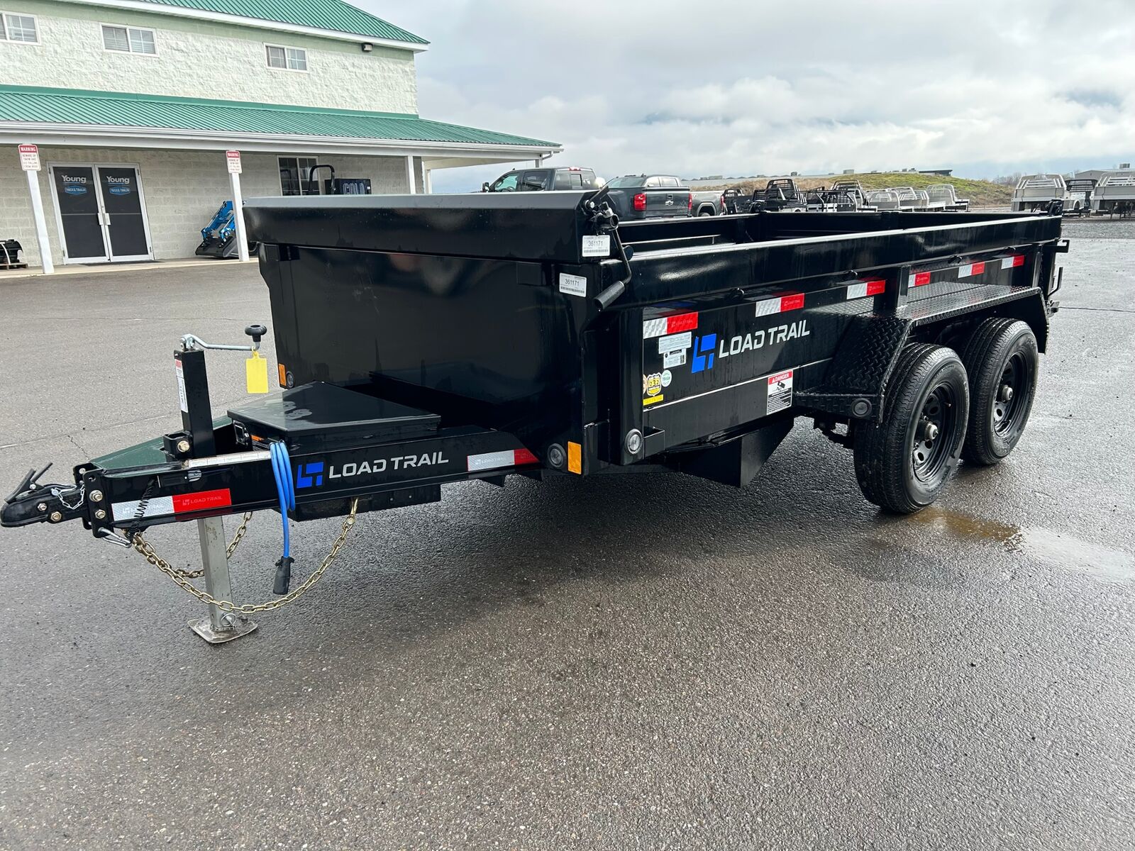 72"x12' Dump 2 - 5,200 Lb Rockwell Spring Axles (2 Elec Brakes) ST225/75 R15 LRD 8 Ply. (BLACK WHEELS) Coupler 2-5/16" Adjustable (4 HOLE) Diamond Plate Fenders (weld-on) 16" Cross-Members 18" Dump Sides w/18" 2 Way Gate Ramp Holders Only For 80" x 16" Slide In Ramps Jack Drop Leg 7000 lb. Lights LED (w/Cold Weather Harness) 4 - D-Rings 4" Weld On Front Tongue Mount Tool Box Cylinder Package 3" x 24" Standard Battery Wall Charger (5 Amp) Tarp Kit Spare Tire Mount Black Powdercoat 2/3/2 Warranty