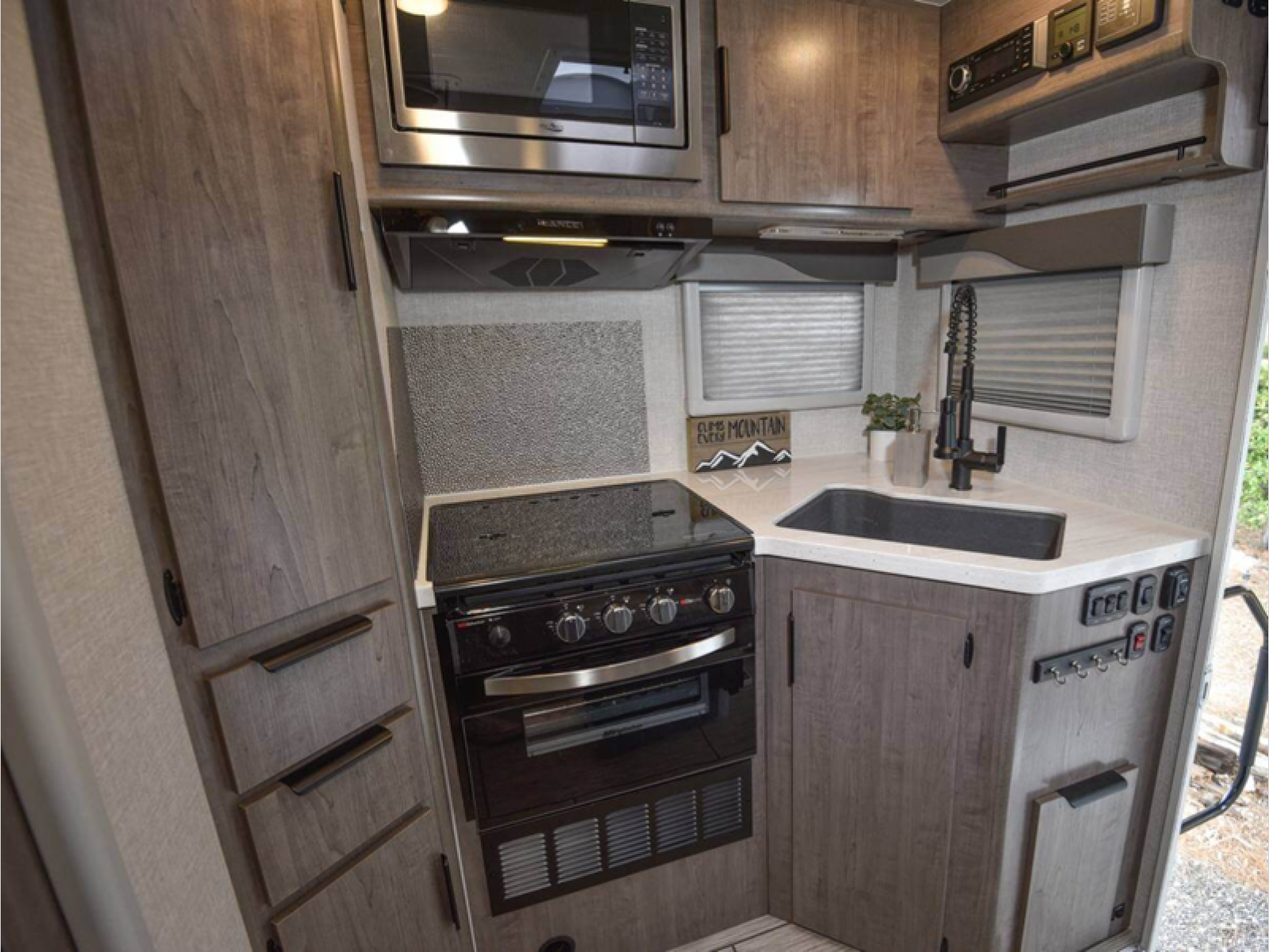 There's no better time than now to start camping in a Lance truck camper! Each model is constructed with a full aluminum frame, a one-piece roof membrane, and block foam insulation throughout to enjoy four seasons of camping. You'll appreciate a keyless entry, an exterior shower, electric remote camper jacks, and eye-catching mountain scene graphics. Inside, there is Lite-Ply cabinet construction, an entry door pull shade, a dual pane bath skylight, and a solid surface galley countertop to name a few comforts. And don't forget to check out the select optional features available to further customize your truck camper!