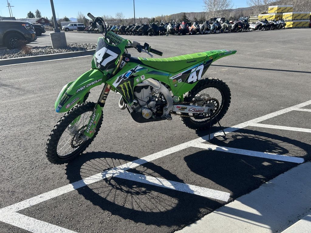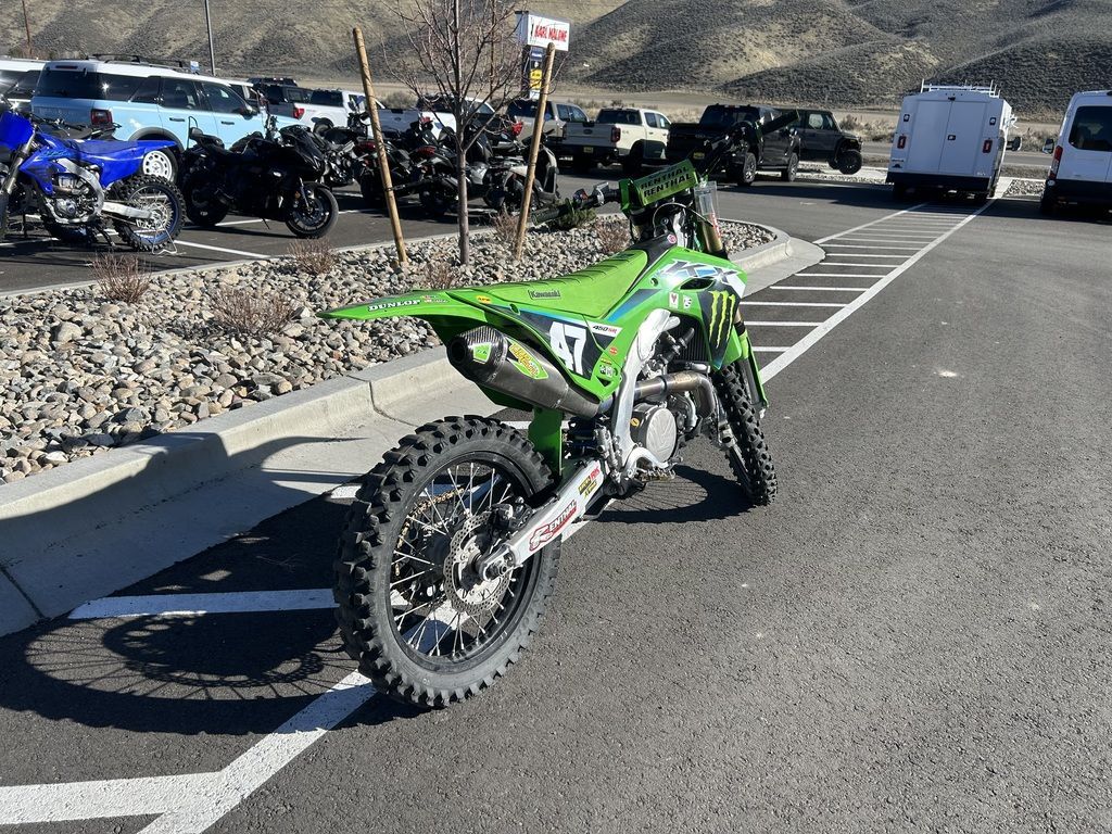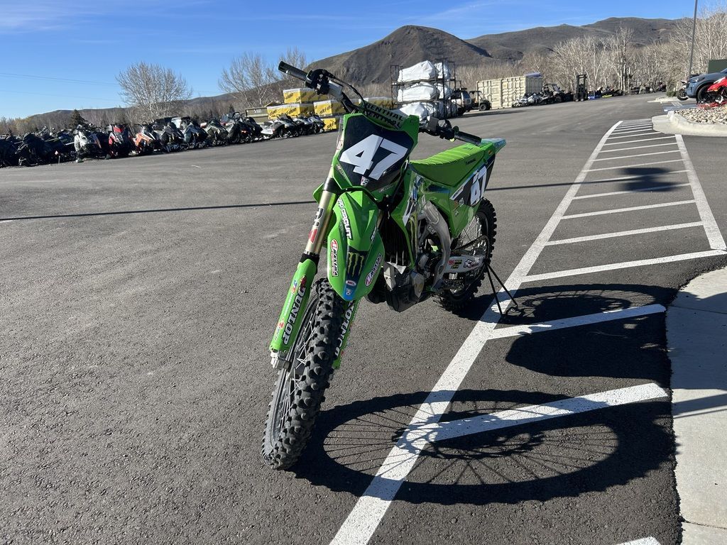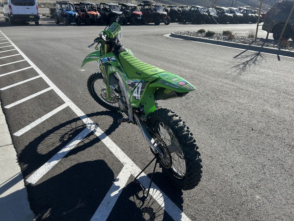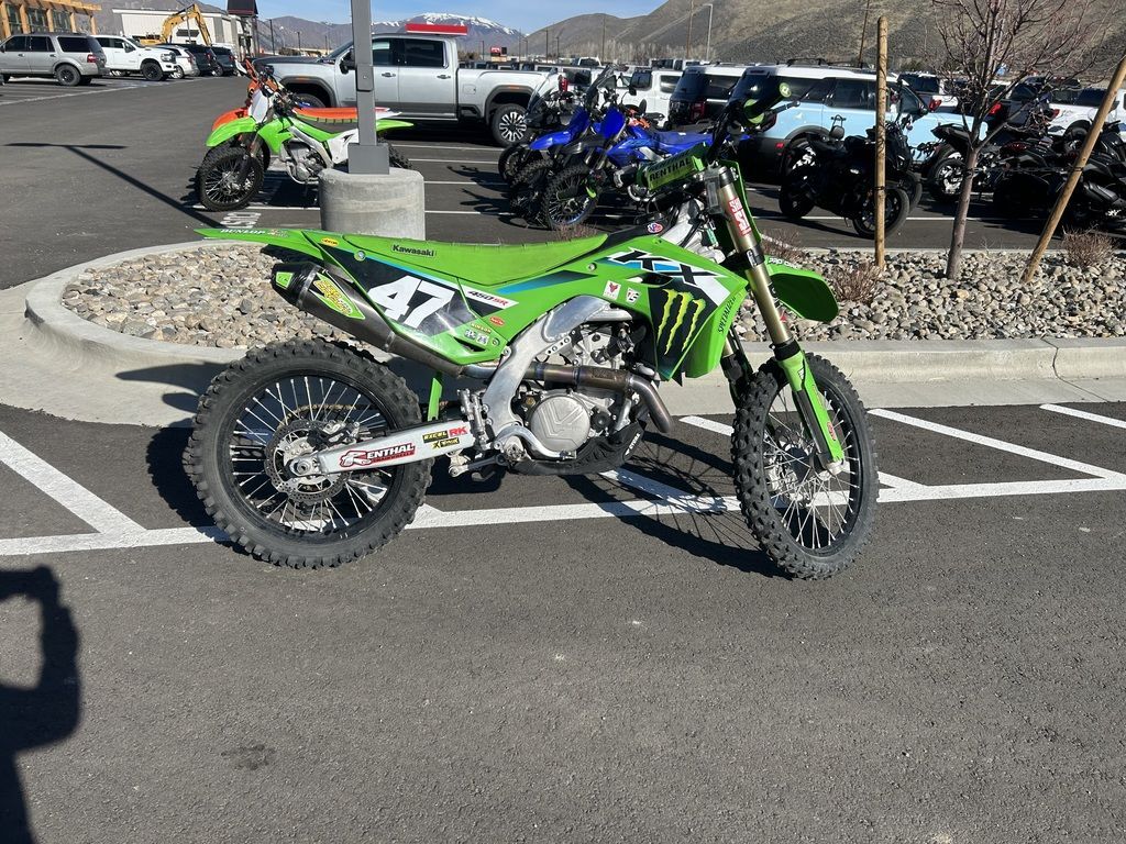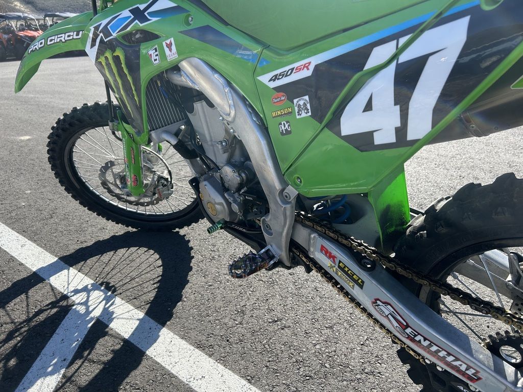 2024 Kawasaki KX™450The KX™ legacy represents a long line of champions. The drive to produce more has not slowed down. Our all-new flagship race machine, the KX™450 motorcycle, offers next-level engineering and power to dominate the track. Over the decades, we've learned what it takes to win and stay on top. The KX450 embodies this legacy to the fullest.Features may include:POWER & PERFORMANCEBUILT TO WINThe updated KX™450 engine delivers broad, useable torque and strong, responsive power across the rev range. From the starting gate to the finish line, this race-ready machine is built to stay ahead of the pack.RACE-READY SUSPENSIONLEAVE THEM IN THE DUSTTake the lead with proven race-winning performance. The highly adjustable suspension package delivers smooth action, firm damping, and contributes to optimal traction.ADVANCED TECHNOLOGYRIDE WITH CONFIDENCEWith traction adjustability and power mode control at your fingertips, the KX™450 motorcycle offers superior features designed to inspire confidence. What's more, this race-ready machine is backed by decades of championship-proven experience.CHASSIS & ERGONOMICSMADE TO SHAVE LAP TIMESExperience the race-winning advantage of a strong and lightweight chassis, agile handling, and exclusive ERGO-FIT® technology.ADDITIONALNEW lightweight aluminum perimeter frame for improved handlingNEW muffler position for improved mass centralizationNEW ODI lock-on gripsNEW quick-release side cover offers tool-less air filter accessNEW radiator shrouds shape for improved riding positionNEW rear fenderConed Disc-Spring Hydraulic Clutch