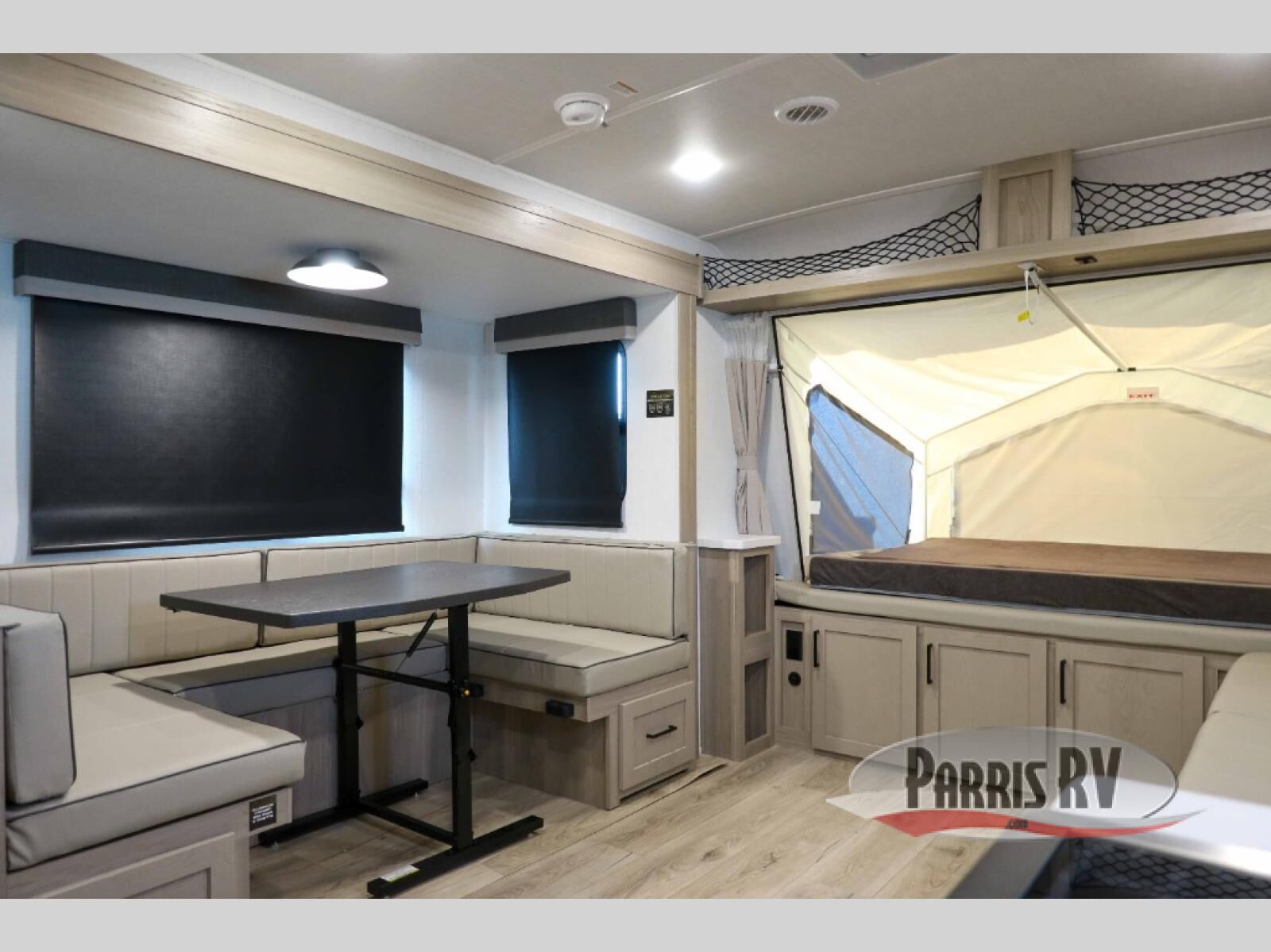 With any Rockwood Roo expandable travel trailer by Forest River you will enjoy smooth towing thanks to the Dexter sprung axles and nitrogen-filled tires. The key-Alike locks provide easy access in and out of your trailer, and each model includes Winegard Air 360+ prepped for WiFi for all your connection needs. Each model is constructed with a fully laminated walkable roof, a 6-sided full-aluminum frame, and complete composite wall construction for added durability. You will enjoy many interior comforts, including residential look kitchen countertops, roller shades, hidden hinge cabinet doors, and more features found within the Near Nature Package!