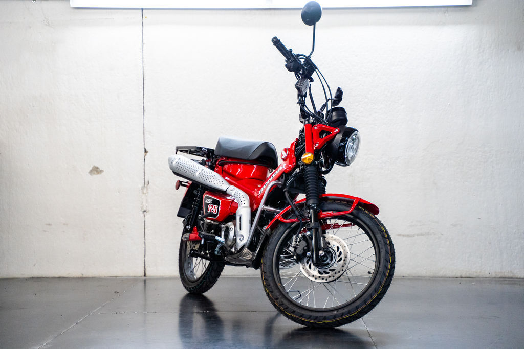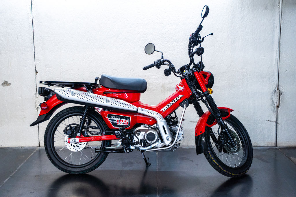 2025 Honda® Trail125 Step up your explorer game Inspired by the iconic Trail 90 and Trail 110, the Trail125 combines retro charm with modern tech, now in Glowing Red and Pearl Smoky Gray. Our rugged 125cc fuel-injected engine, front-wheel ABS, and versatile rear cargo rack deliver easy handling and endless fun, making it the perfect two-wheeled miniMOTO fun machine. Features may include: Easy to park Because of its compact size, parking in the city is easy, as is loading and unloading it from a vehicle or storing it when you're not riding. Hydraulic disc brakes Single-disc brakes – 220mm front and 190mm rear – combine for excellent stopping power. And the increased safety of standard front-wheel ABS gives riders added confidence. Cargo rack Gear up for fun with the large rear cargo rack. Additional cargo racks for the center and above the headlight are available from our accessory line for even more storage so you can prepare for whatever lies ahead.