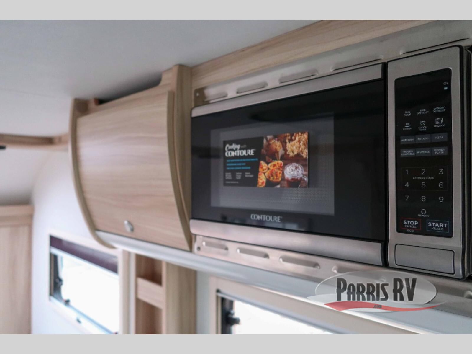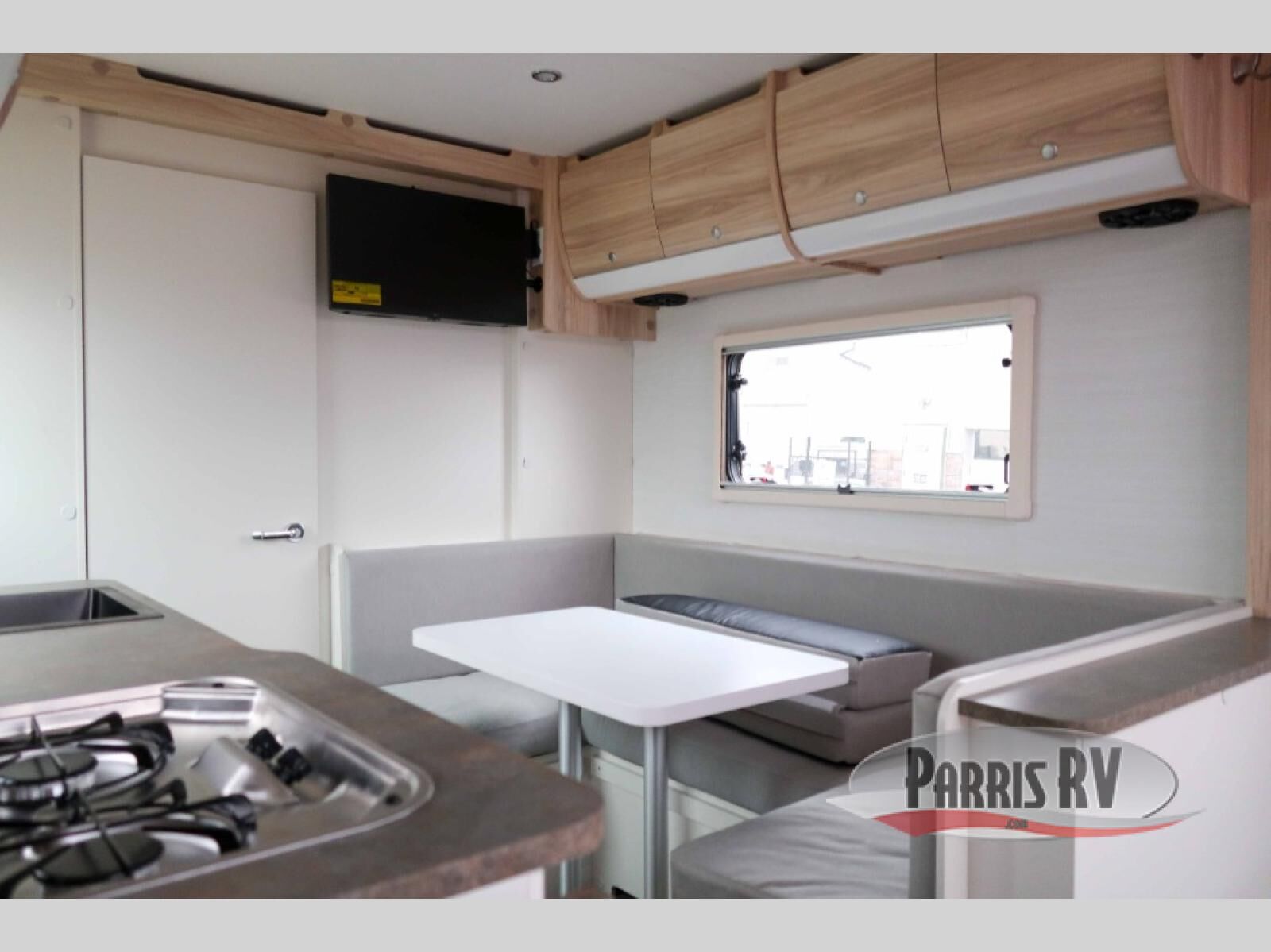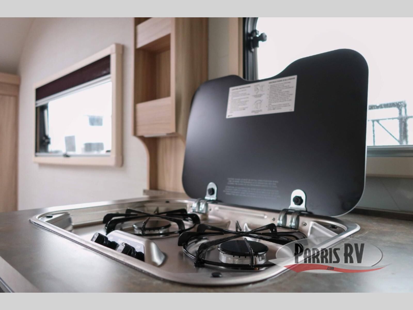You'll find comfort wherever you camp in this travel trailer! Once you arrive at your campsite, you can unload the pass-through storage, put out the 12' awning, and relax in your camp chairs. There is a two-burner glass stove top and microwave oven inside that will allow you to make lunch for your crew, and there is a 4.6 cu. ft. 12V compressor refrigerator to keep your food fresh. The 4-peson U-shaped dinette will provide a place to dine together and convert to sleeping space for one to two more. Up front, a walk-around queen bed will provide a great night's rest.