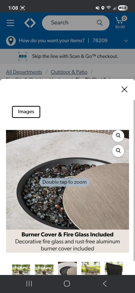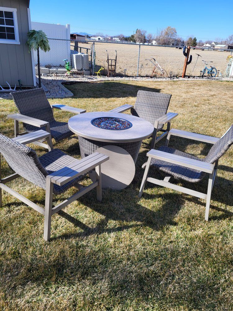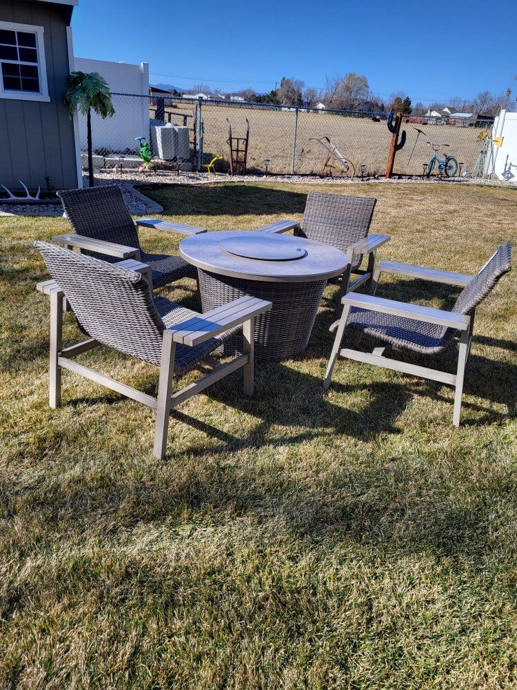 Members Mark Hampton **5pc Fire Pit Chat Set *** All Weather Resistant UV Protected Beige/Gray 4- Wicker Rocker Chairs 1- Fire Pit w/Glass Beads 60,000 BTU Propane Custom Covers Brand New & Assembled