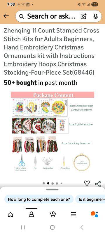 Perfect for Beginners & Adults – Pre-stamped 11CT fabric (20x20cm) with clear patterns and easy-to-follow instructions, designed for stress-free holiday crafting. Complete 4-Piece Christmas Set – Create festive ornaments, stockings, and décor with all-inclusive tools: hoops, threads, needles, and pre-printed fabric. Premium Quality Materials – Durable embroidery hoops, vibrant color-fast threads, and tightly woven 11CT fabric for professional-looking results. Thoughtful Holiday Gift Idea – Ideal for crafters, DIY enthusiasts, or anyone seeking a creative Christmas project to personalize their home decor. Quick & Rewarding Project – Each design takes 3-5 hours to complete, making it a fun weekend activity for solo or family crafting sessions.