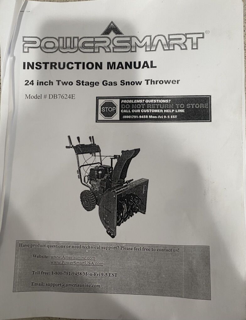 PowerSmart 212cc engine, push button electric start (or pull start) snowblower & throwing distance 40 ft. 2 Stage Snow Blower, steel auger, width of 24 inches wide. Self-Propelled ~ 6 forward & 2 reverse speed settings with 13 inch snow tires, LED Headlights.