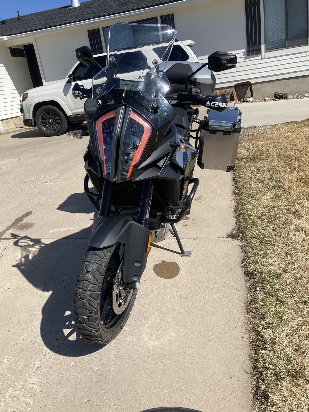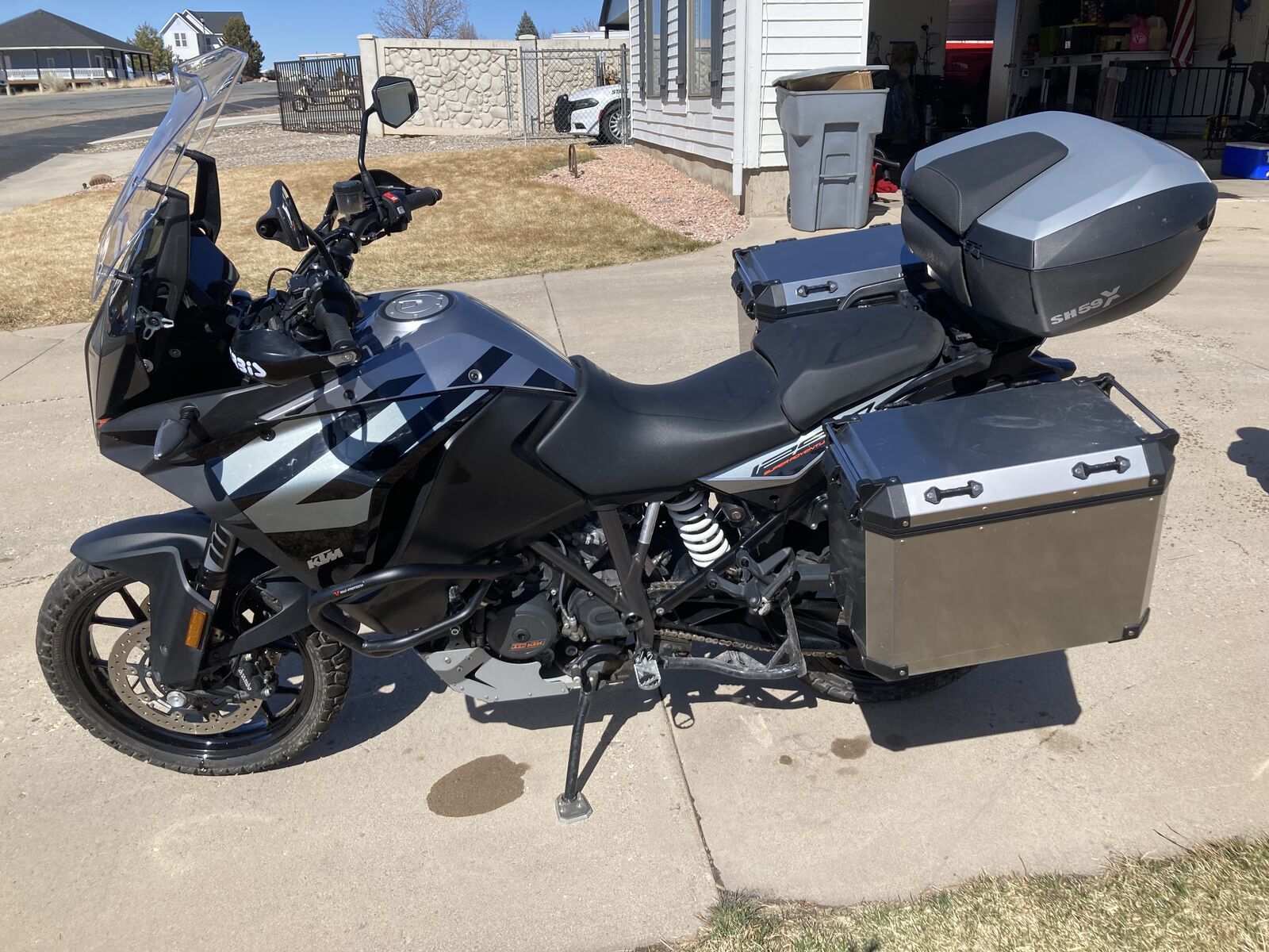 Venmo1290S with 50/50 tires, skid plate, crash bars, bar risers, hard bags, original tires like new, radiator guard and I'm sure there is something else I forgot. 2019 6500 miles. This bike is one of the best I have ever owned for cruising the pavement with the cruise control set and then getting distracted by every gravel / 2track road you come across.