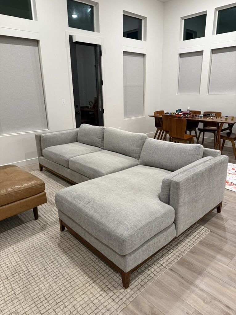 • 5 years old • Neutral color – works with farmhouse, modern, or transitional styles • Removable & washable cushion covers • Deep, supportive seating – extremely comfortable • Solid construction (quality piece, not a budget sofa)