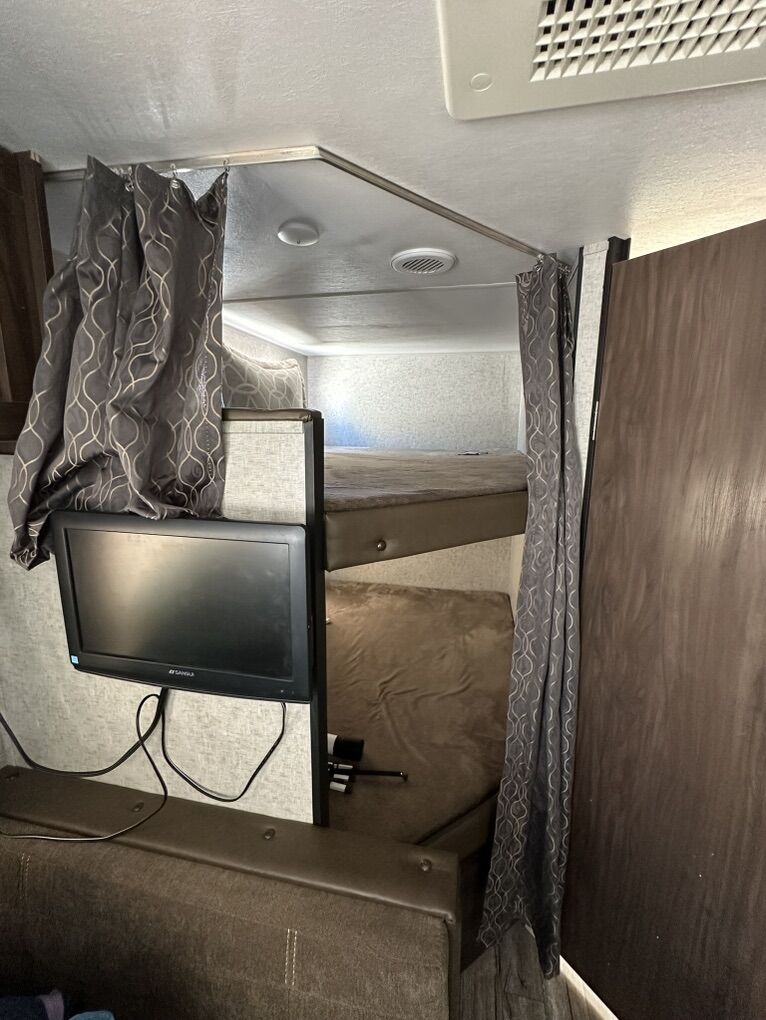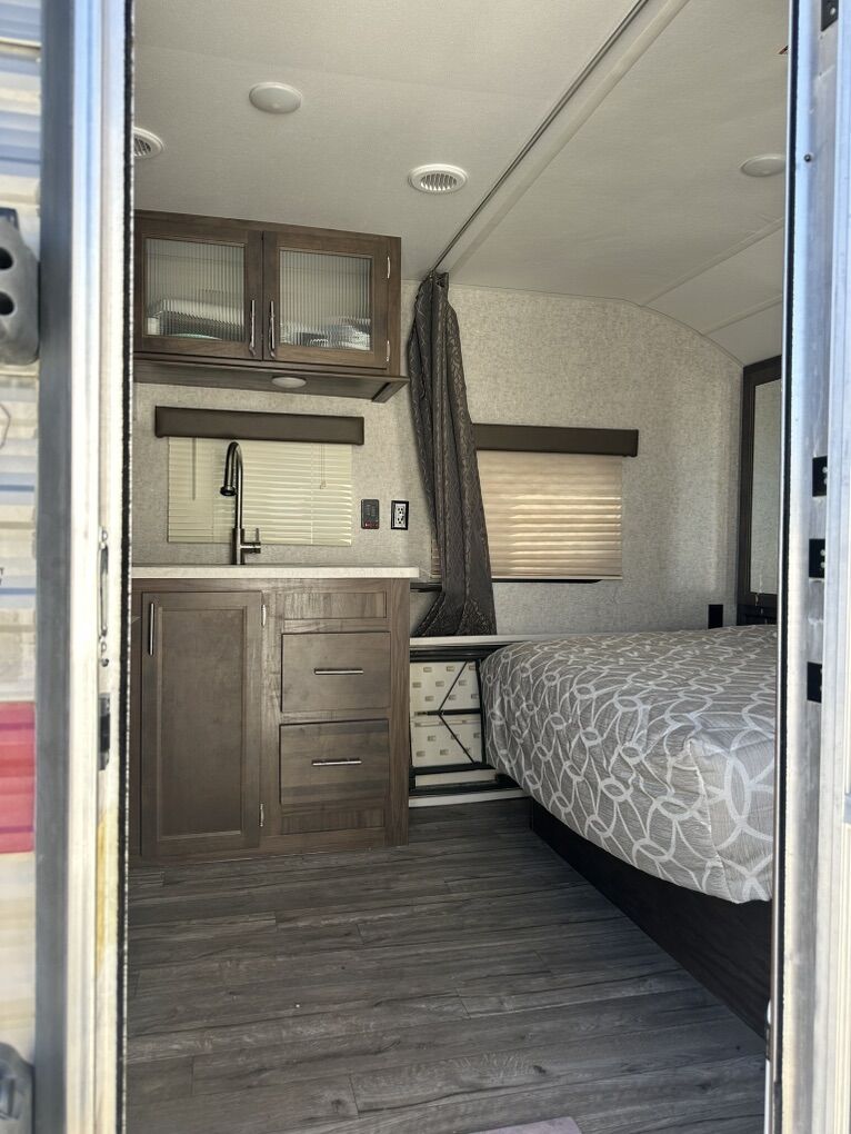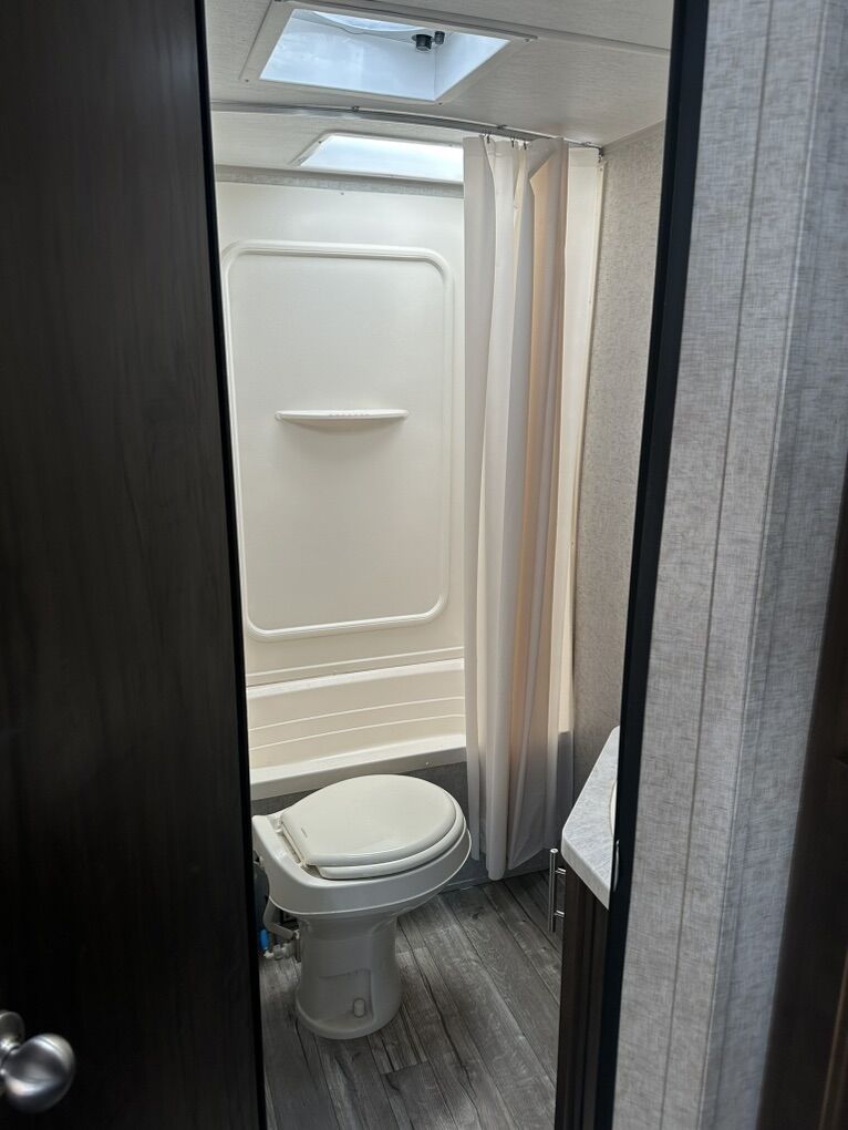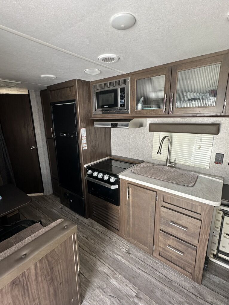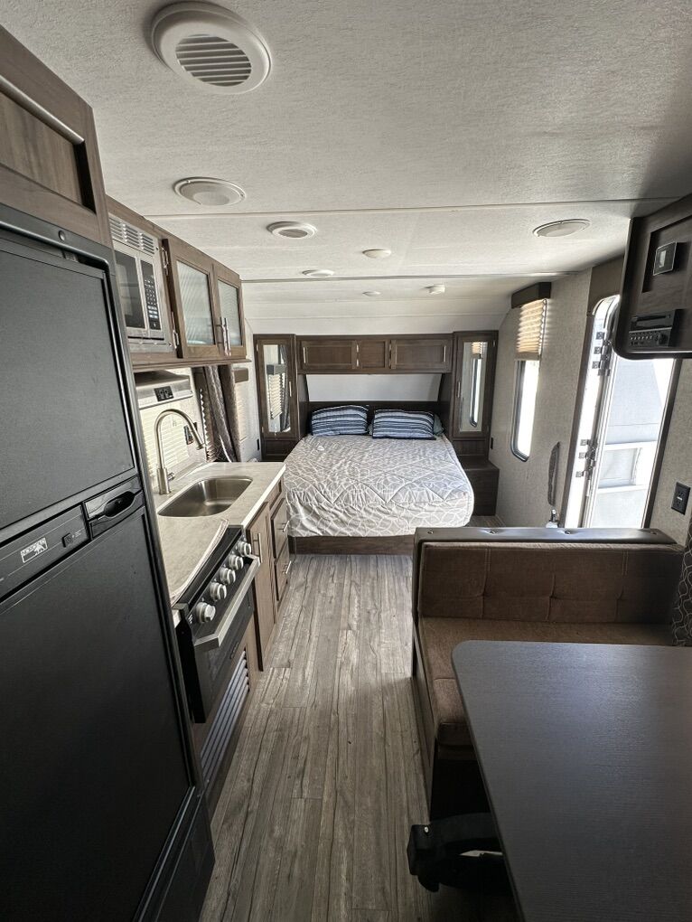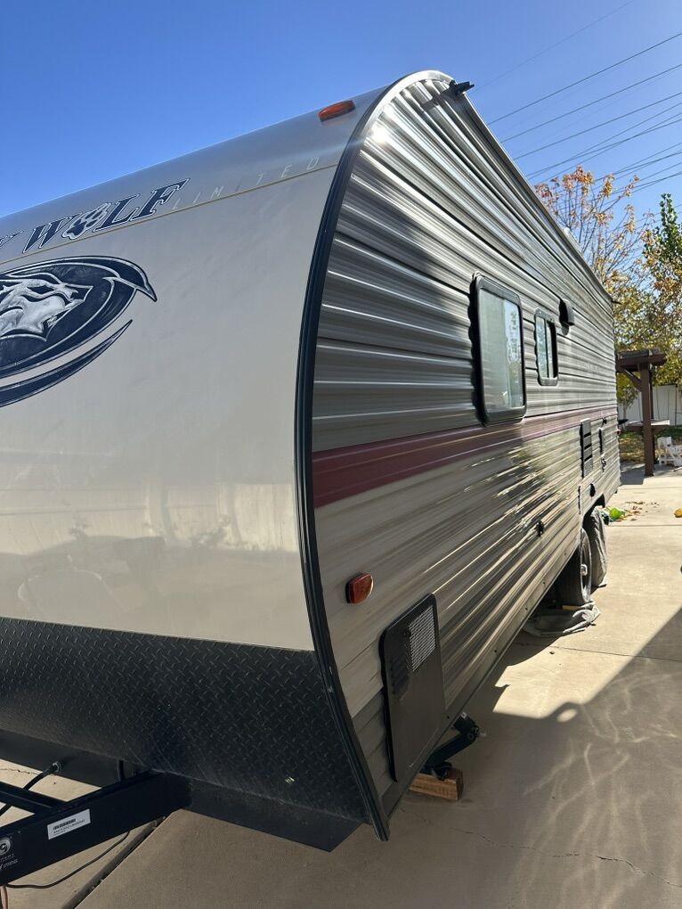 Adventure-ready and family-friendly! This 22-foot Grey Wolf Special Edition travel trailer is the perfect lightweight camper for weekend getaways or extended trips. Easy to tow and packed with smart features, it comfortably sleeps up to 7 people, making it ideal for families or groups. Highlights: • Sleeps up to 7 (bunks + dinette + queen bed) • Outdoor-friendly 22’ size – easy to tow and park • Black tank flush system for easy, mess-free cleanout • Full kitchen (fridge, microwave, stove/oven) • Bathroom with shower & toilet • Heat & A/C for all-season comfort • Plenty of storage inside and out • Power awning for shaded outdoor living • Electric Hitch Clean, well-maintained, and ready for your next camping trip.