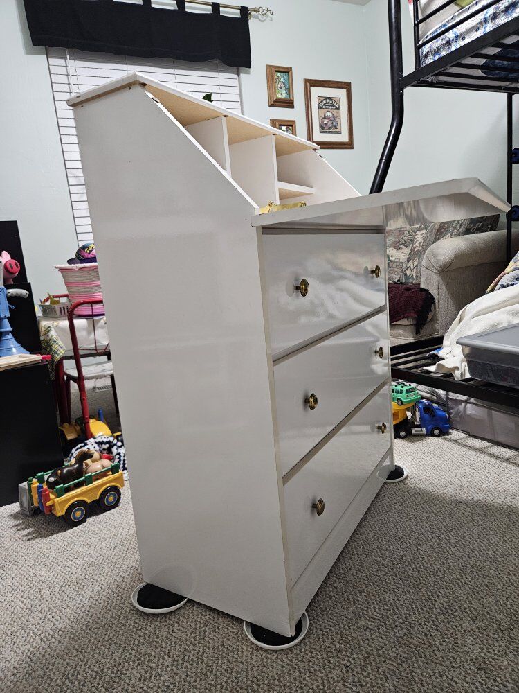 Pull down top dresser / desk in great condition. Gloss melamine type finish, not painted. Cash or Venmo, local pickup only. Thanks!