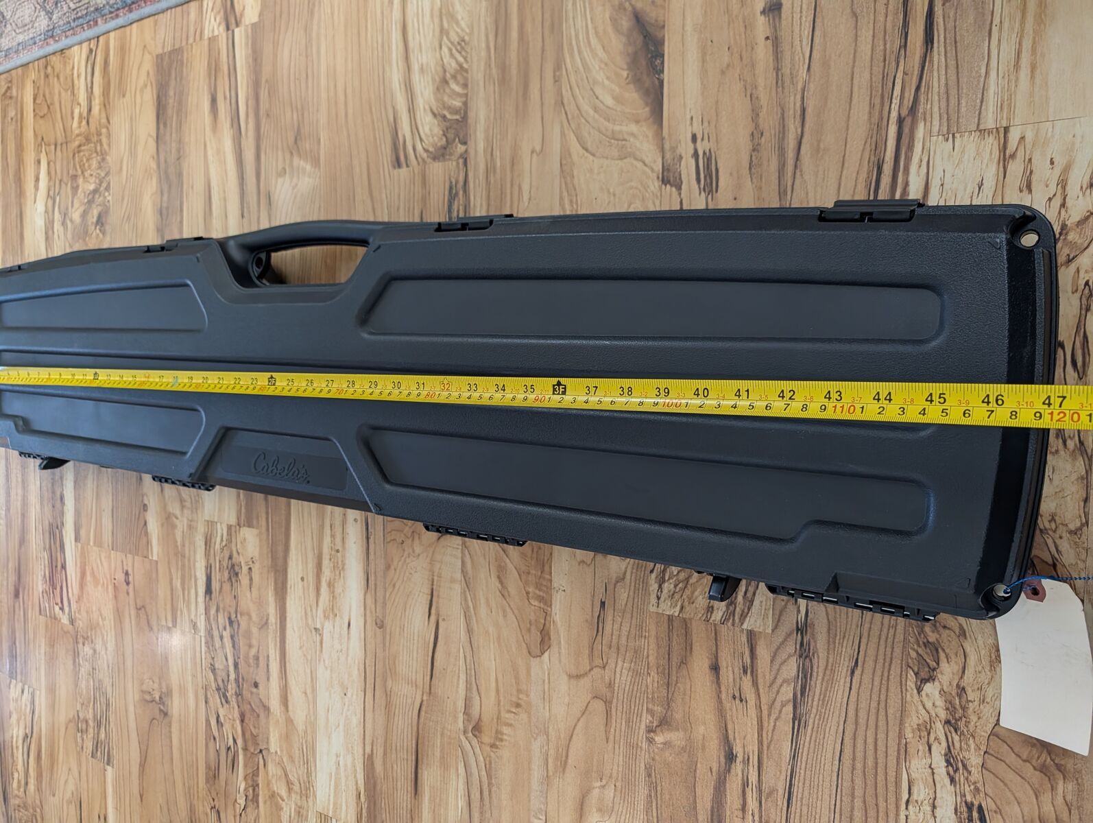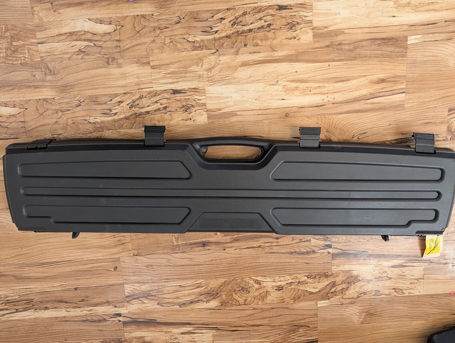 Protect your rifle from dings, scratches, scuffs during transport with the Cabela's Single Scoped Rifle Case. Featuring a strong ribbed hull design with secure recessed latches and steel hinge pins, this Cabela's rifle case offers superior strength and rigidity to withstand accidental drops, stacking, or other potential hazards, while thick protective foam gently cradles your rifle for a safe, secure hold. What's more, integrated padlock holes ensure optimal security and anti-theft protection.