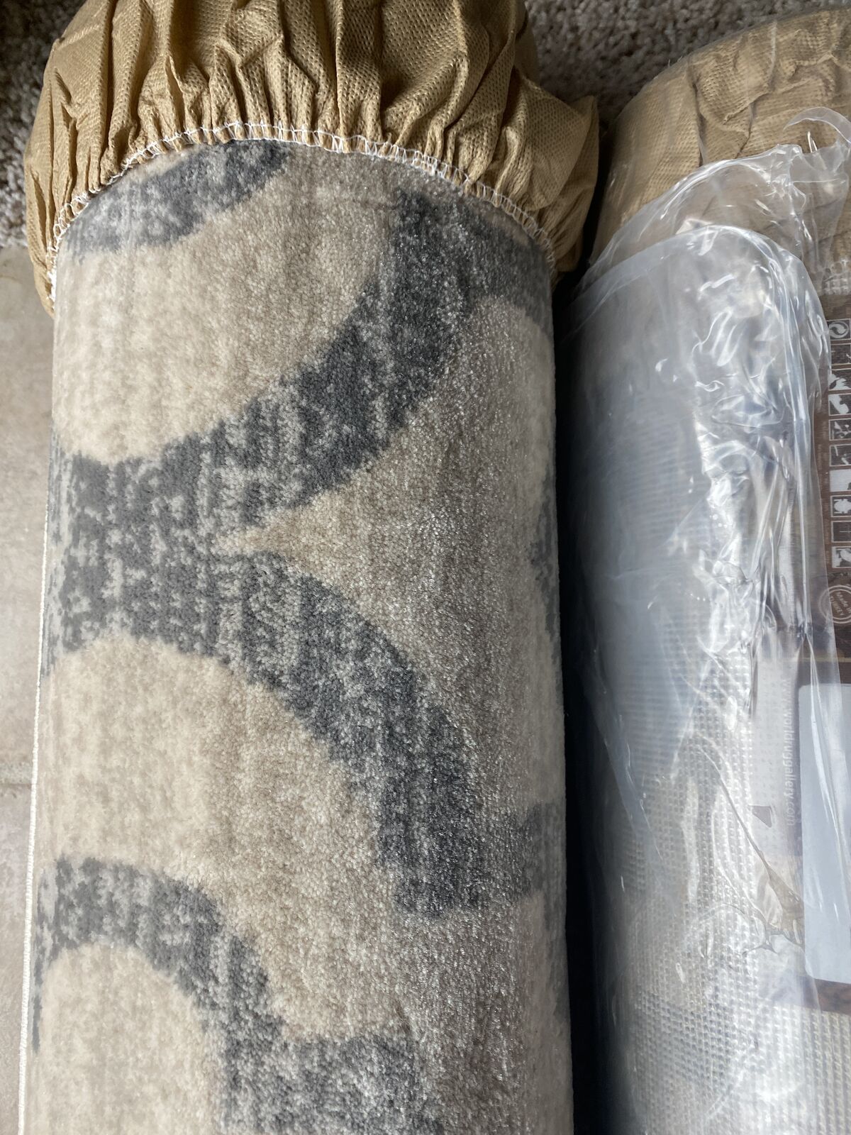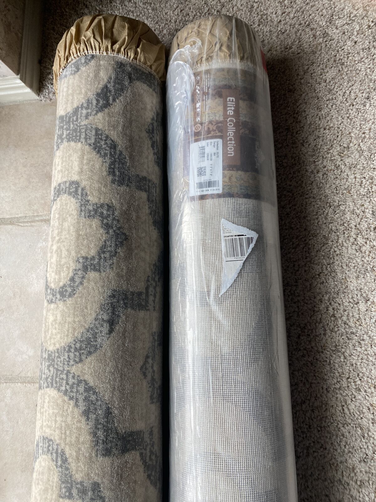 New. Two area rugs cream background with blue trellis. 5' x 7'